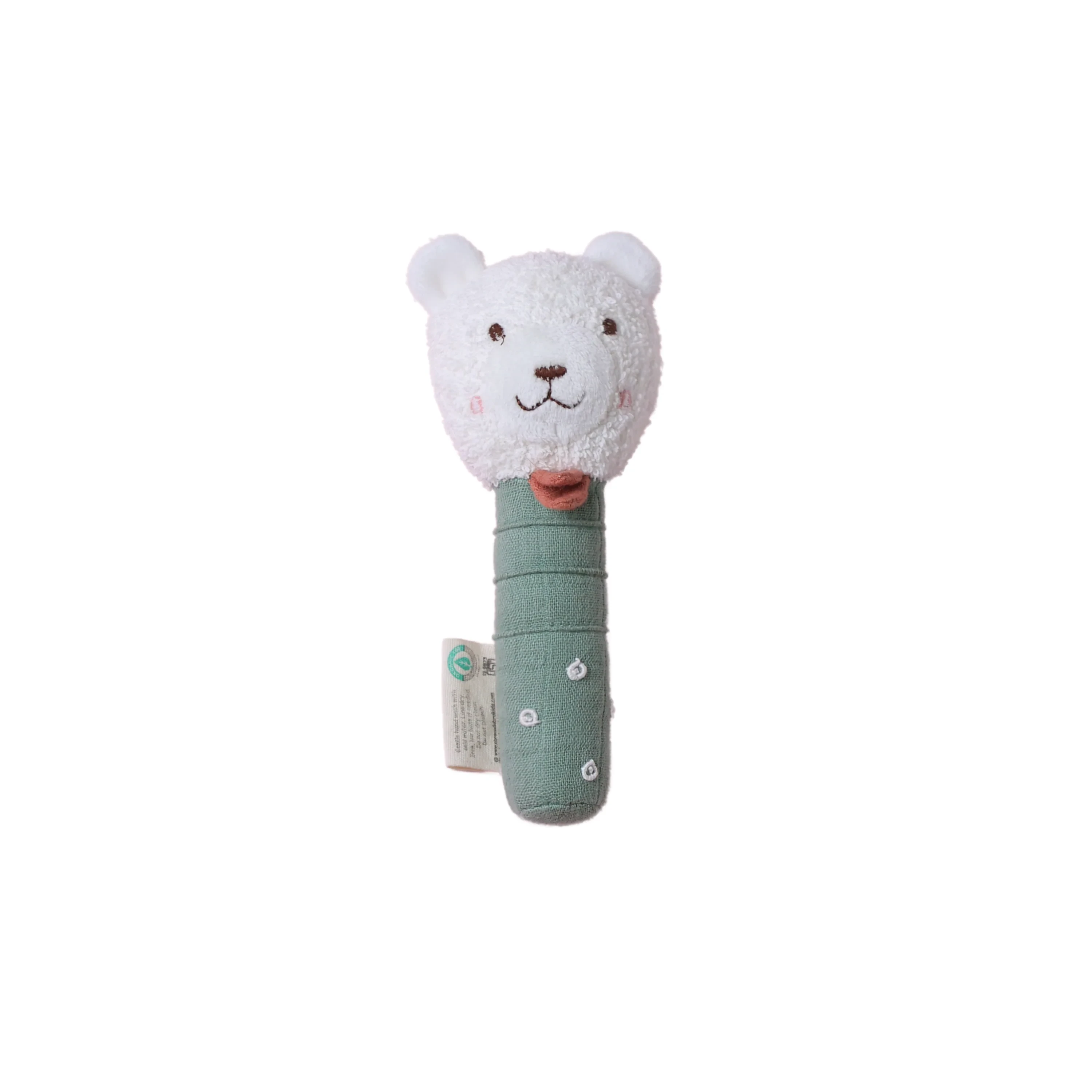 Introduce your little one to their very first friend with our charming collection of hand rattles. Designed to delight babies with every shake, these plush rattles feature gentle sounds, embroidered details, and irresistibly cute animal faces. The easy-to-grip fabric handle is crafted from soft cotton in soothing colours and decorated with delicate stitching. Whether used for playtime, tummy time, or on-the-go entertainment, these rattles encourage sensory development and offer comforting companionship.