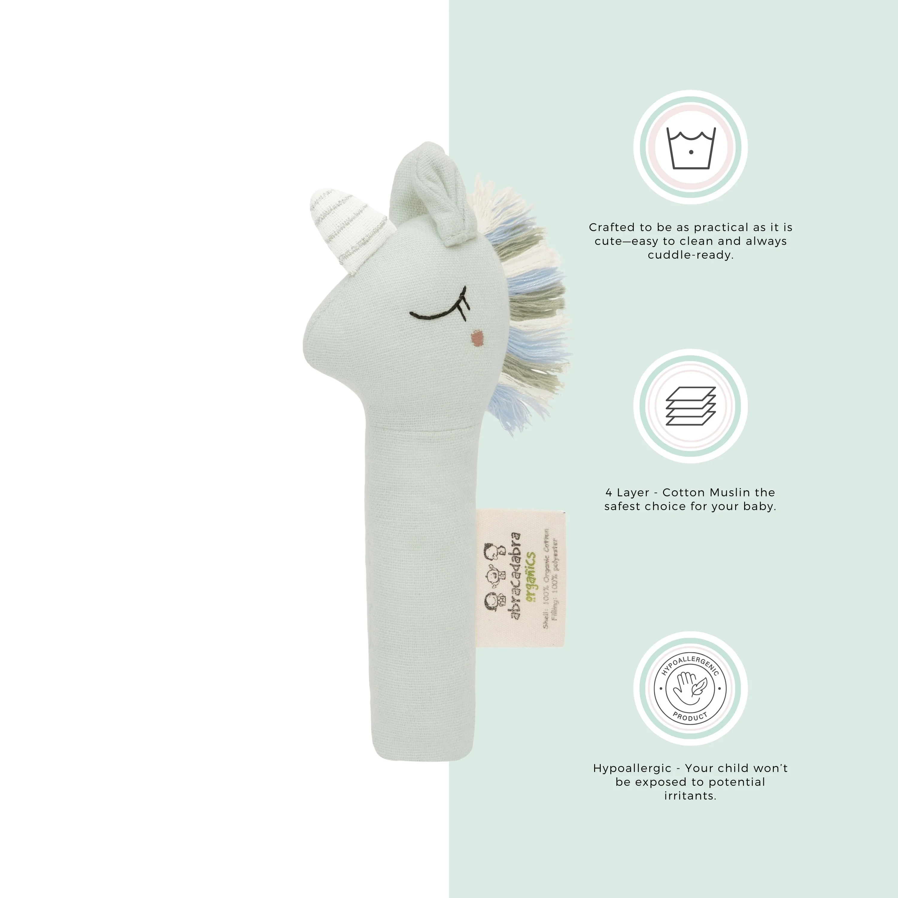 Abracadabra Organic Hand Rattle – Unicorn (Blue)