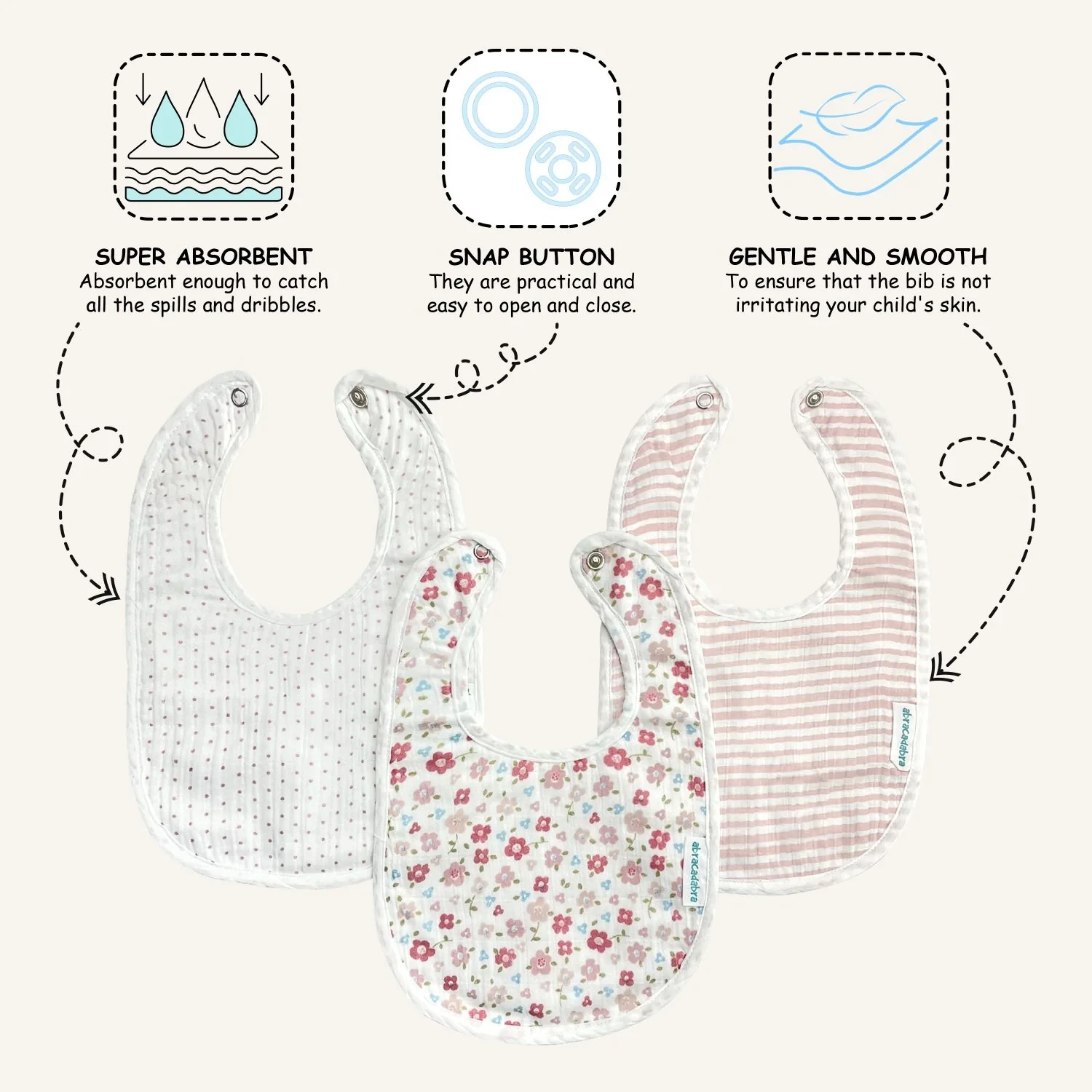 1. Our Bibs are made with 3 layers that provide high absorbency and is very easy to maintain