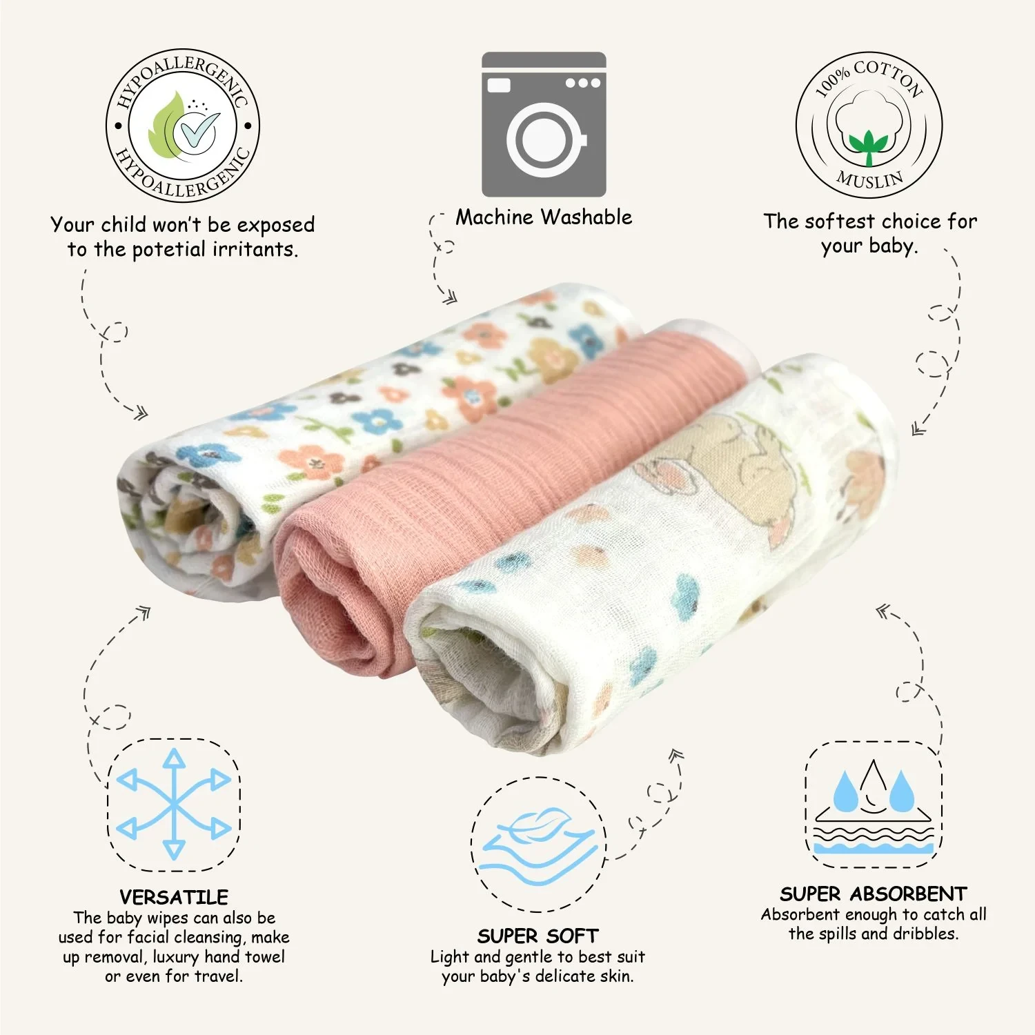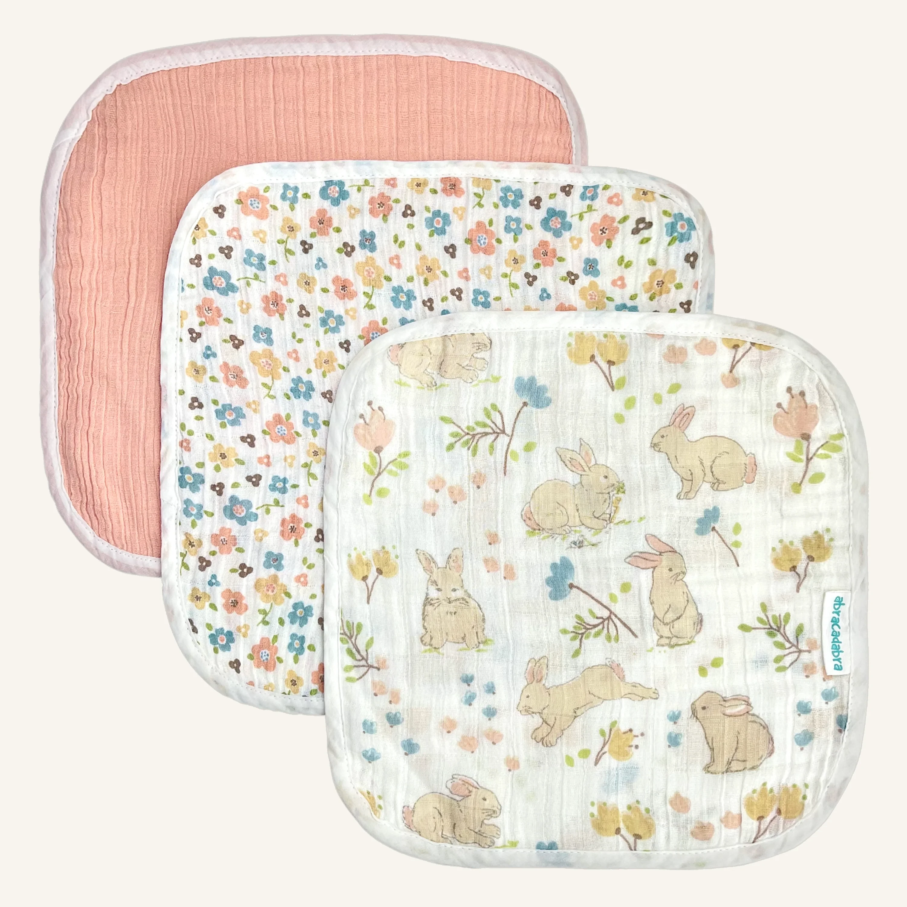 Abracadabra Muslin Wipes (Set of 3) - Bunny Garden