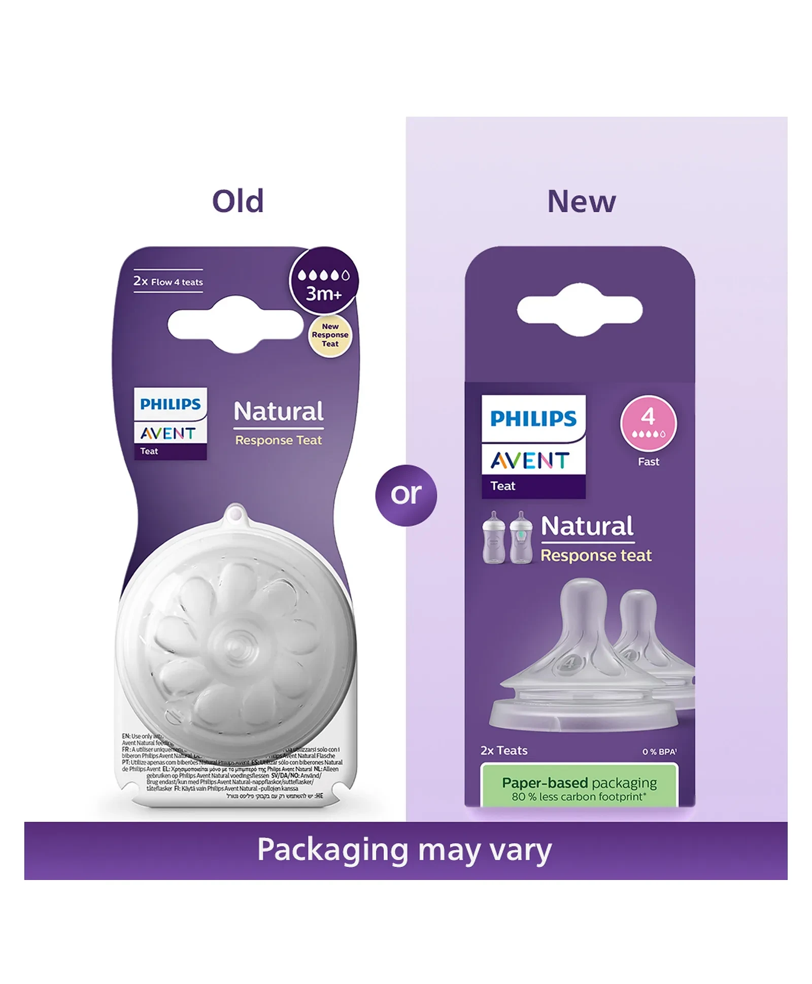 Avent Natural Response Baby Bottle Flow 4 Teat | Ideal for 3 months+ | Pack of 2 (Packaging May Vary)