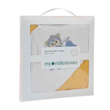 My Milestones 100% premium cotton towels are plush, super-soft, and ultra-absorbent. These premium towels are of two categories- solid & stripes. 100% premium cotton terry towels are plush, super soft, and ultra-absorbent. Attractive color with matching prints. It has a loop to hang dry the towel.