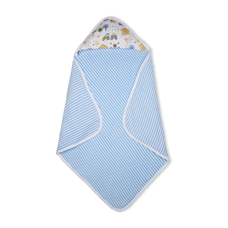 Baby Hooded Towel - Muslin Hood - Blue Bell Stripes