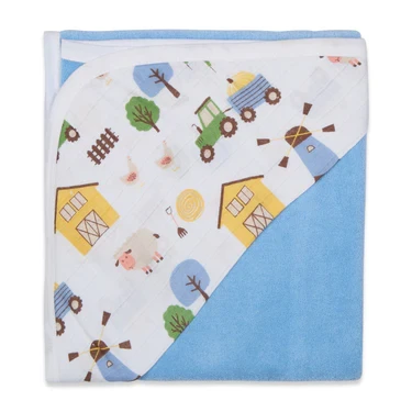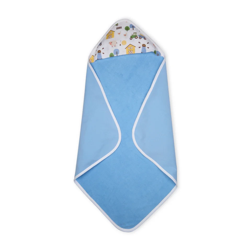 Baby Hooded Towel - Muslin Hood - Blue Bell Solid