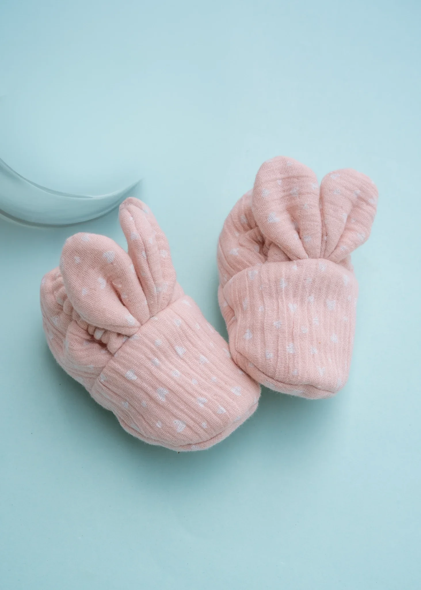 Wrap your little one's feet in pure softness with our Red Heart Bunny Booties, delicately crafted from pure gauze fabric for a breathable and gentle touch. Designed for comfort and charm, these adorable booties feature bunny ear accents, making them a delightful addition to your baby's wardrobe.