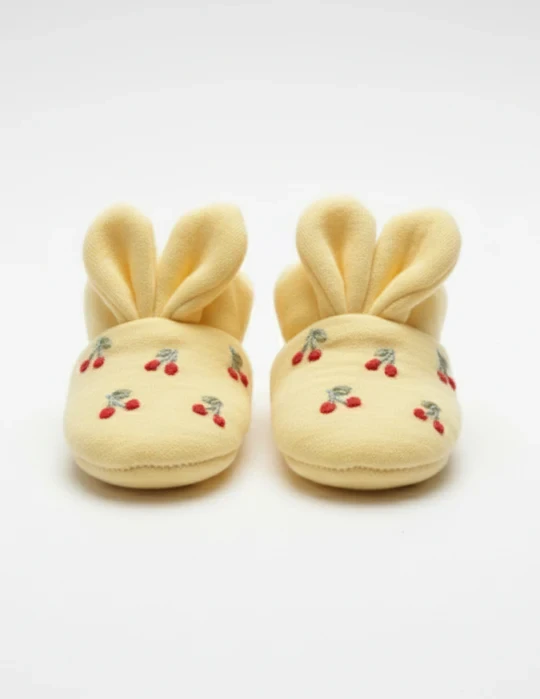 Bunny Booties | Yellow Embroidered 3-6m