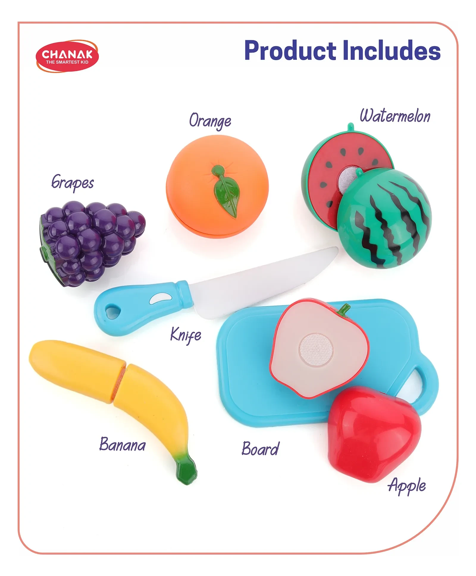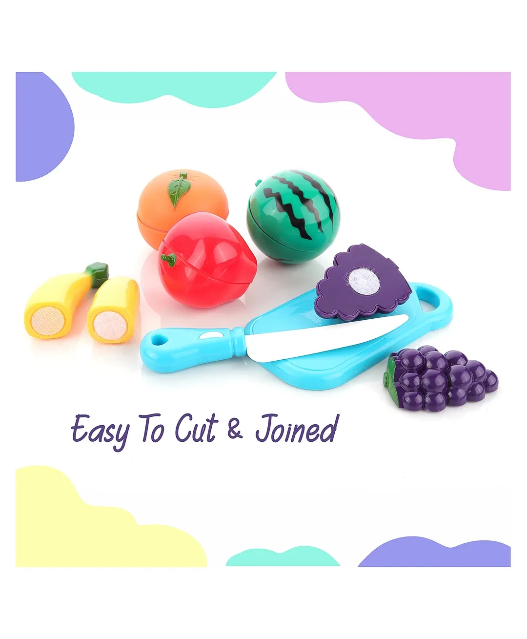 4. Helps in skill development:Included Items: 5 Sliceable Fruits, 1 Chopping Board & 1 Knife. With the cute shapes and perfect size for kids, this fruit and vegetable cutting toy is perfect to develop kid's cognitive ability, practical ability, and train their hand-eye coordination."