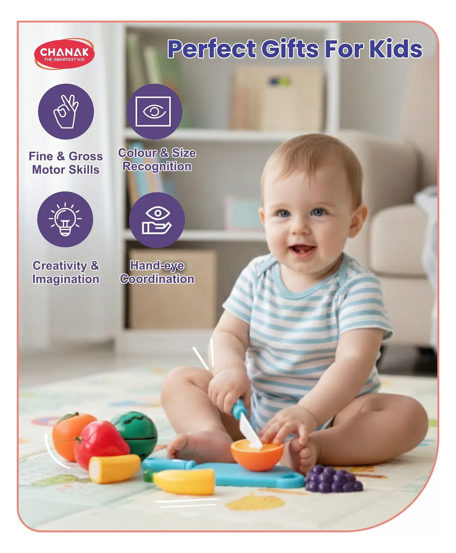 Your child will definitely include this vegetable set while they play, this bright and colorful set will definitely amuse your kid. They will also learn to identify the vegetables and their colors as well as learn counting. The smooth, solid plastic pieces are perfect size pretend play food play sets for kids, help to promote fine motor skills and dexterity. Set Includes Different Colorful Toy Fruits for Your Kids with 1 Chopping Board and a Knife.
