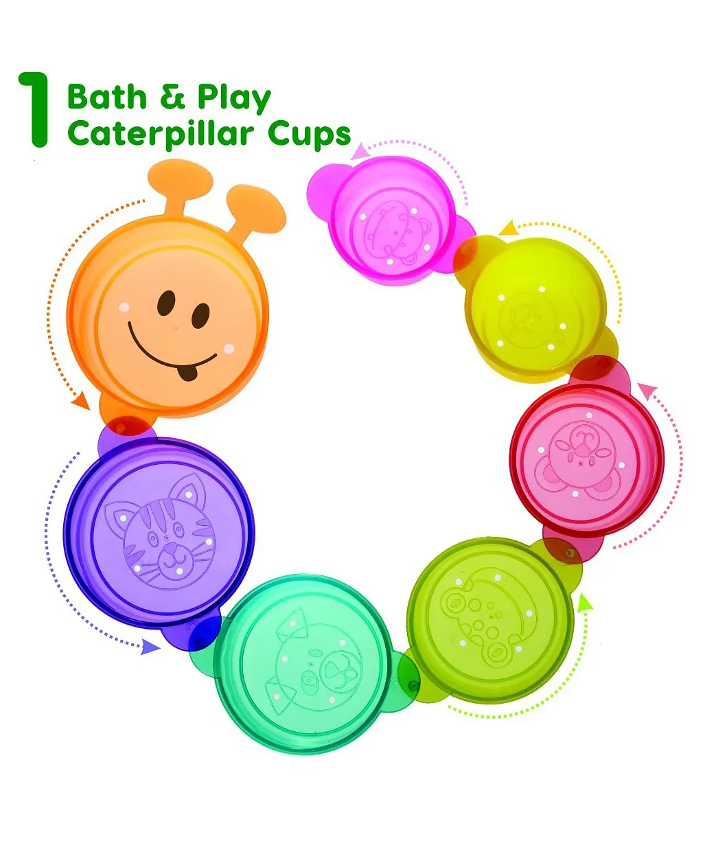 Caterpillar Cups make learning about sizes, numbers, and coordination funeven in the bath!