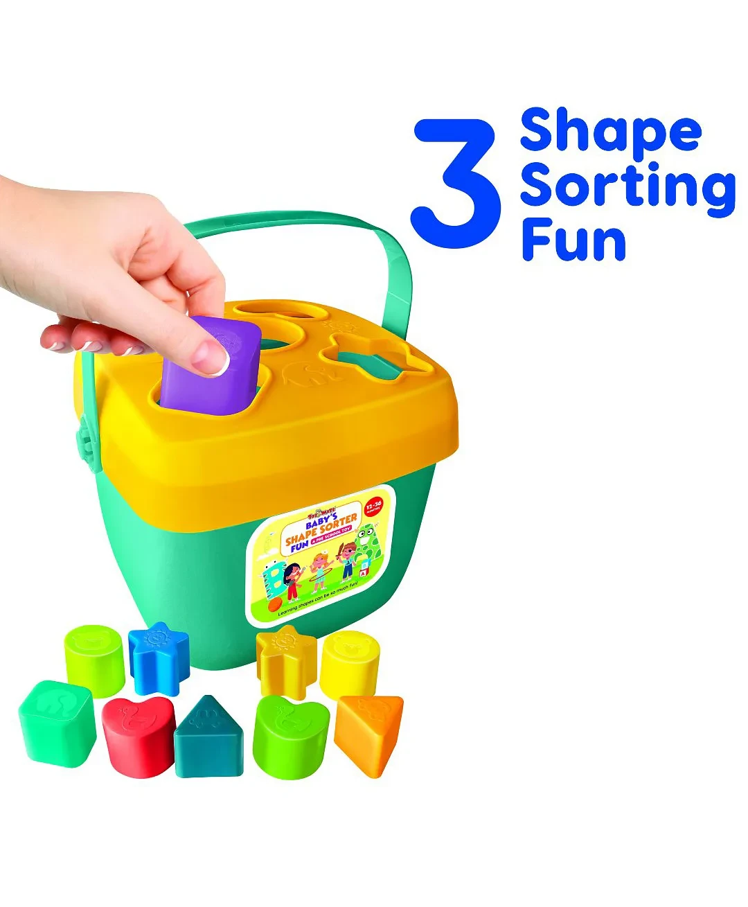 Encourages fine motor skills and hand-eye coordination through stacking cups, rings, and shape sorters.