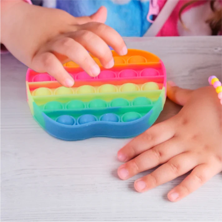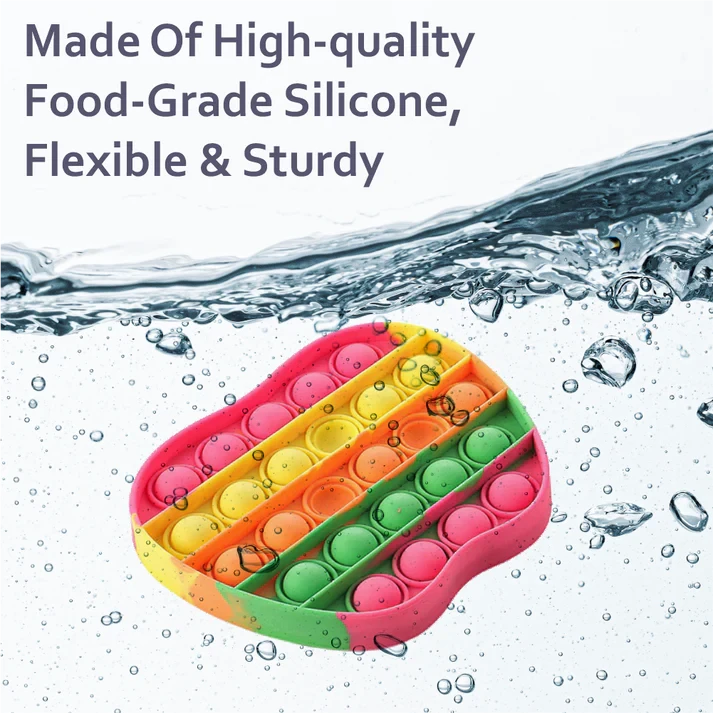 Kids can bend, squish, squeeze, and press the bubbles endlessly. It can be played as a simple pop it game, where players take turns pressing bubbles, and the one who presses the last bubble loses, making it a fun social and puzzle toy for kids. The repetitive popping action helps reduce stress, anxiety, and restlessness while improving concentration and emotional balance.