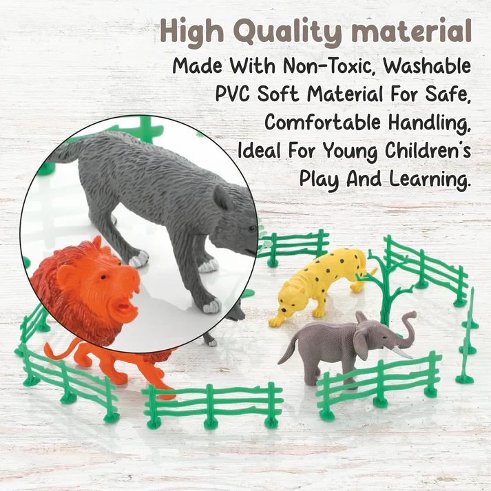 Chanak Wild Animal Toys Set with Tree & Fence is an engaging wild animals toys set designed to encourage imaginative play and early learning. Made from high-quality, non-toxic plastic, these animal toys are soft yet durable, ensuring safe play without damaging walls or floors.