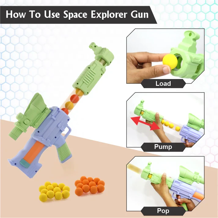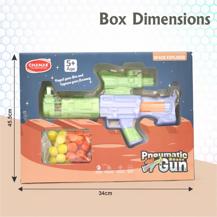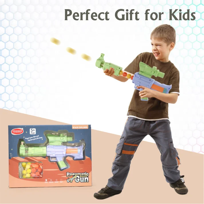 Chanak Space Explorer Pneumatic Gun – Safe Soft Ball Toy Gun for Kids