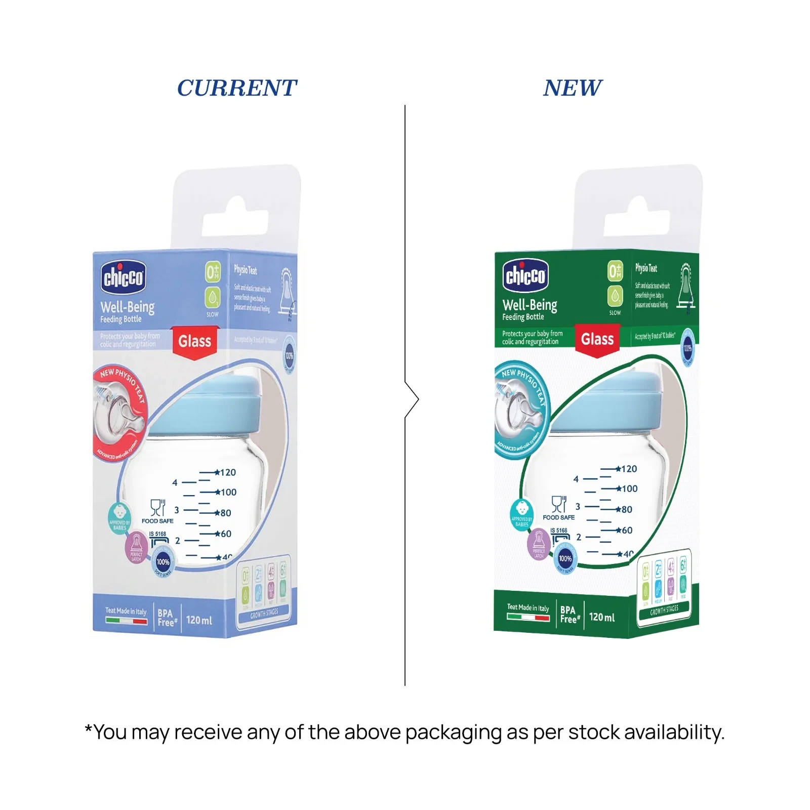 Well Being Glass Feeding Bottle 120ml Blue Slow Flow 0M+