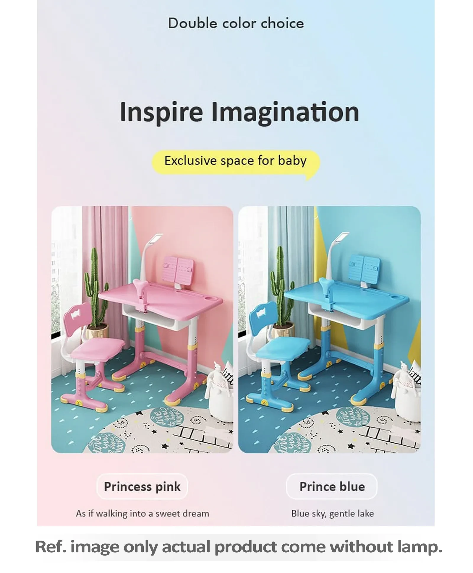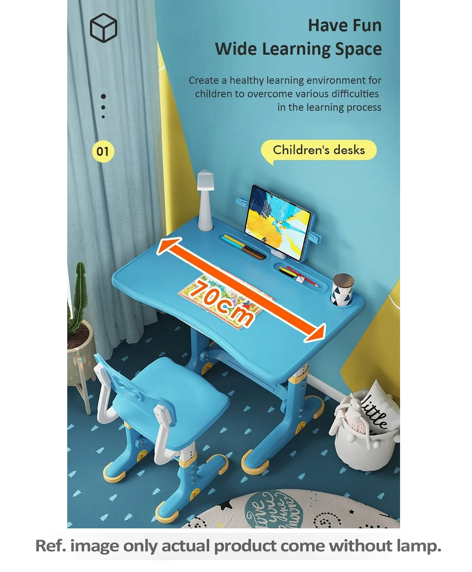 1. Height adjustable study table and chair.
