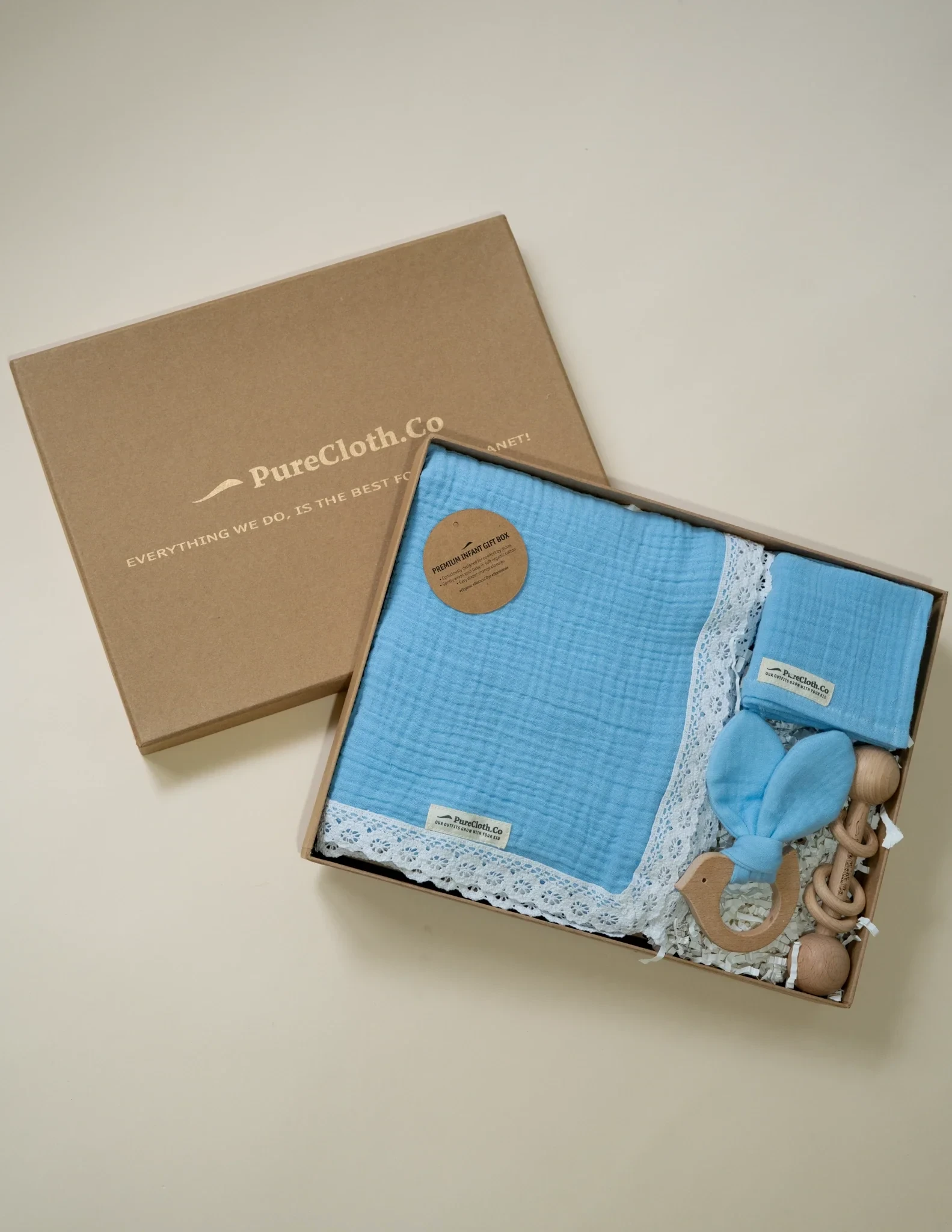PURECLOTH Gift Hamper for Newborn | The Little Nest Bundle Blue