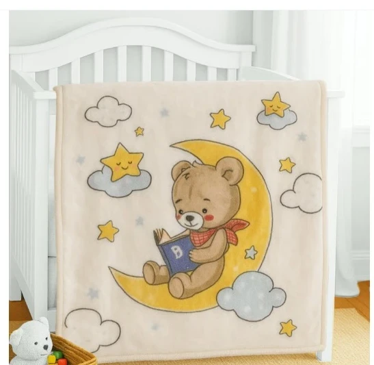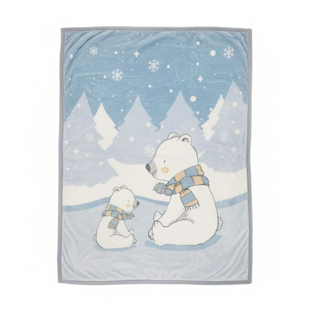 Ultra Soft Plush Baby Blanket Warm and Cozy-Biege-Bear Family
