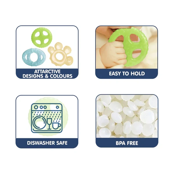 Teething pain can be tough — make it easier for your little one with our Multi-Textured, Water-Filled Cooling Teethers. This convenient pack of 3 features bright, baby-safe designs filled with sterilized water that can be chilled in the fridge for instant gum relief. Each teether includes multiple textures to massage sore gums and promote sensory exploration. Made from BPA-free, non-toxic materials, these teethers are designed to be easy for tiny hands to grasp, hold, and chew — giving both baby and parent a little more peace of mind. Perfect for teething stages, on-the-go use, and everyday comfort.