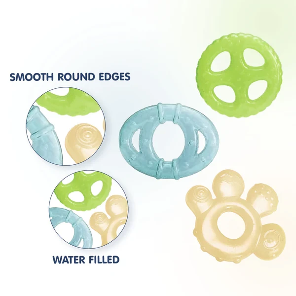 Hopop Water Teether Multi-Textured, Water-Filled Cooling Teether – Pack of 3