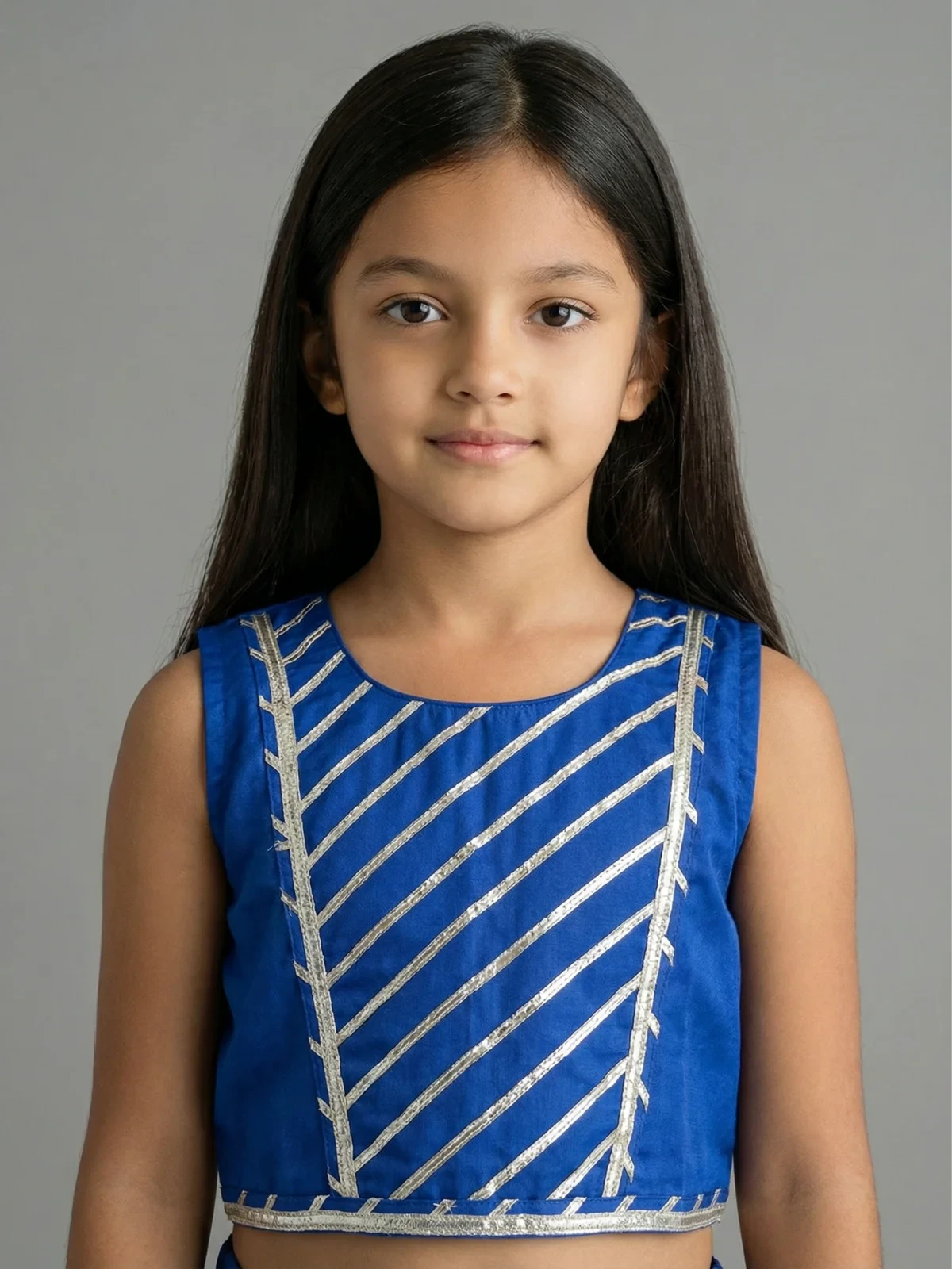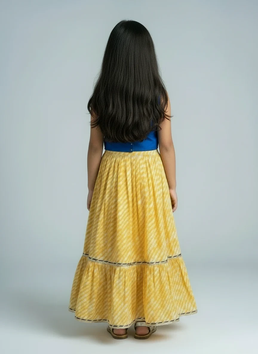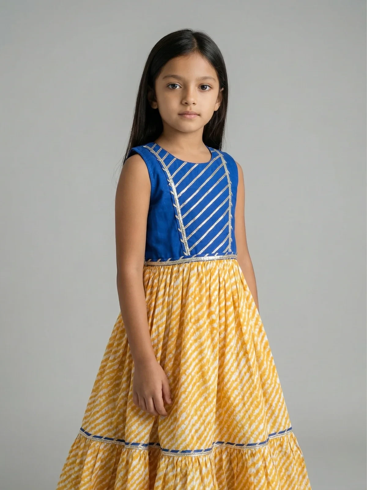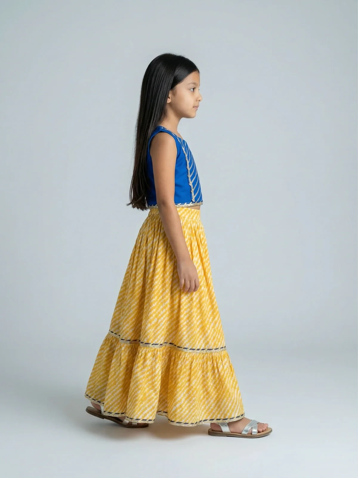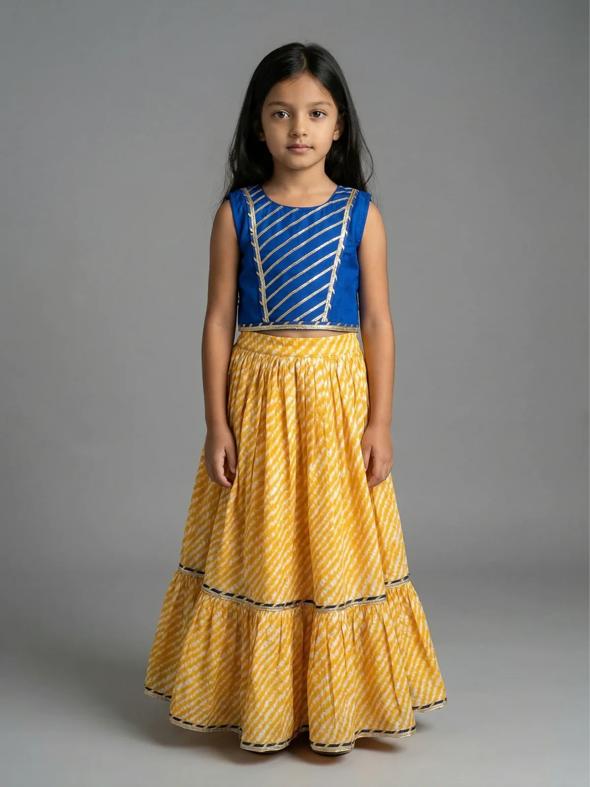 1. Cotton lehenga set made in leheriya print and enhanced with elegant lace detailing