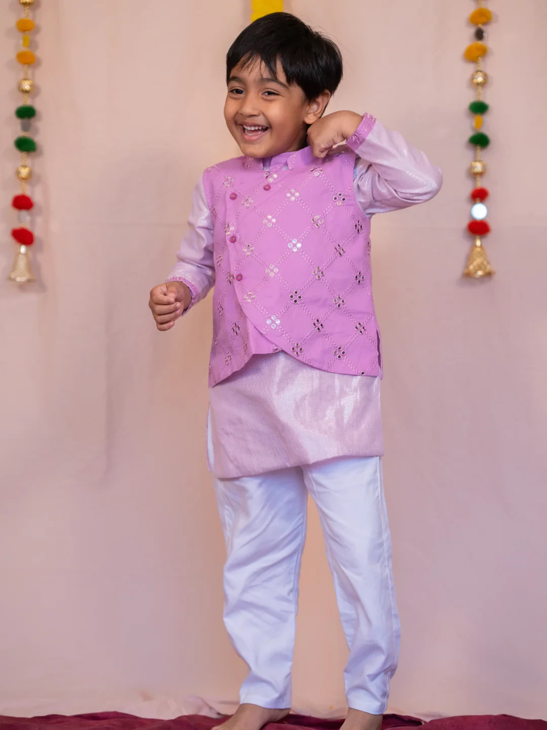 Purple mirror boys bandhgala set