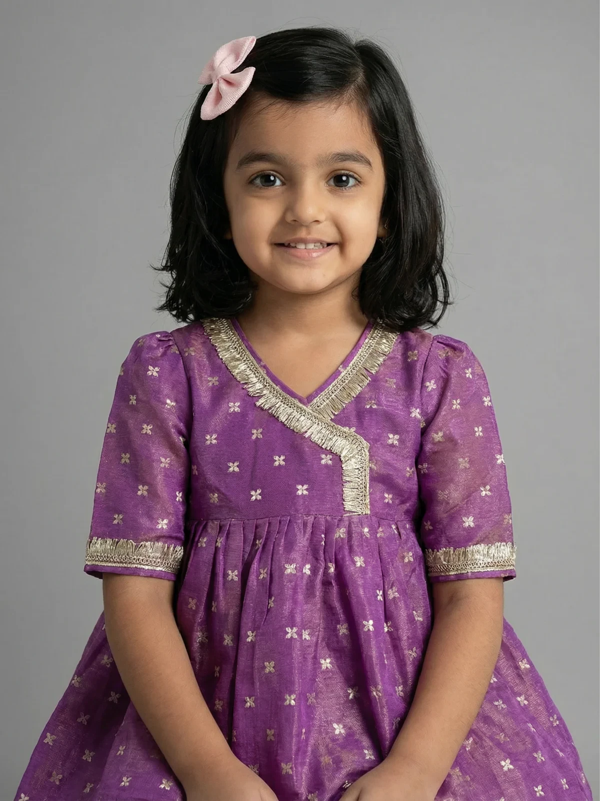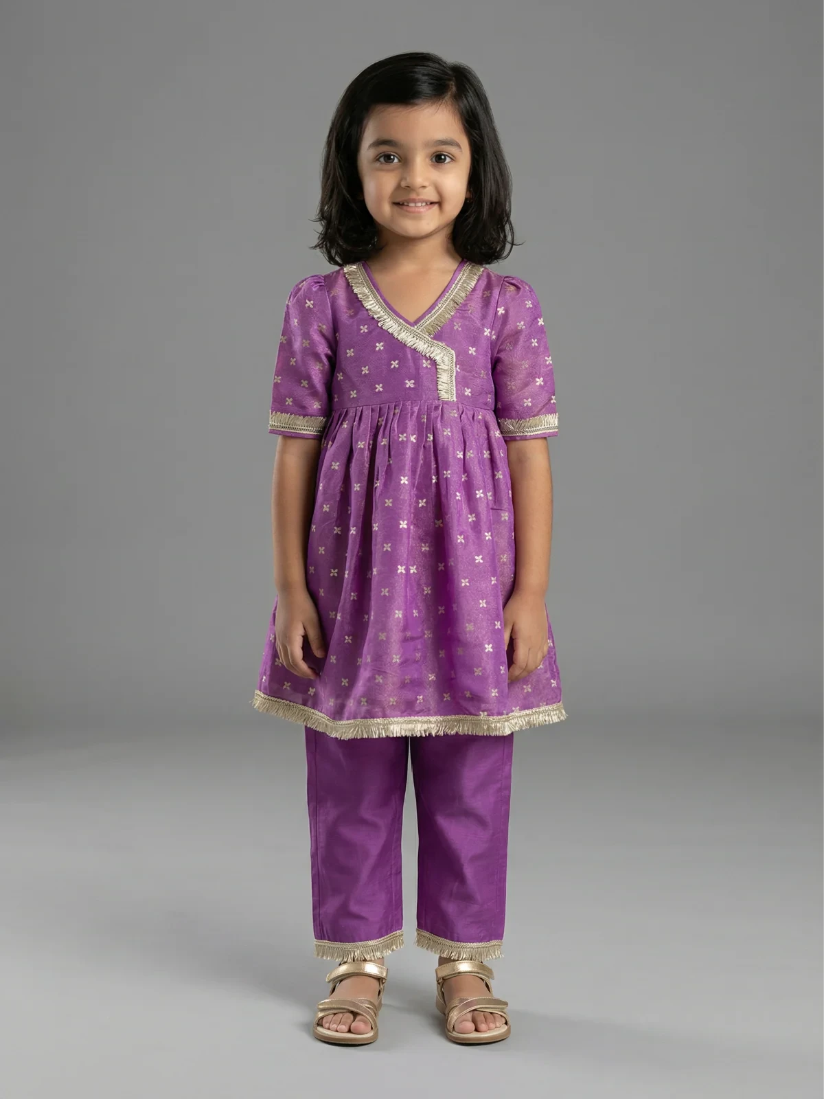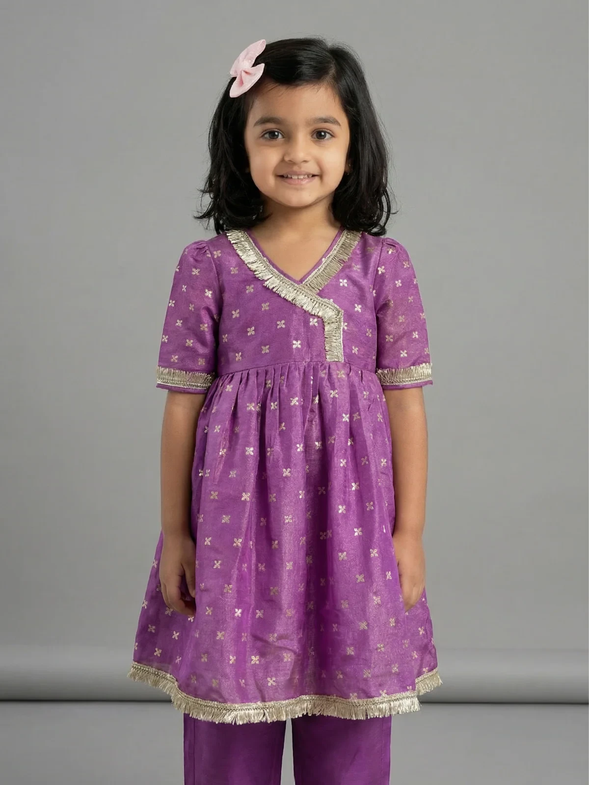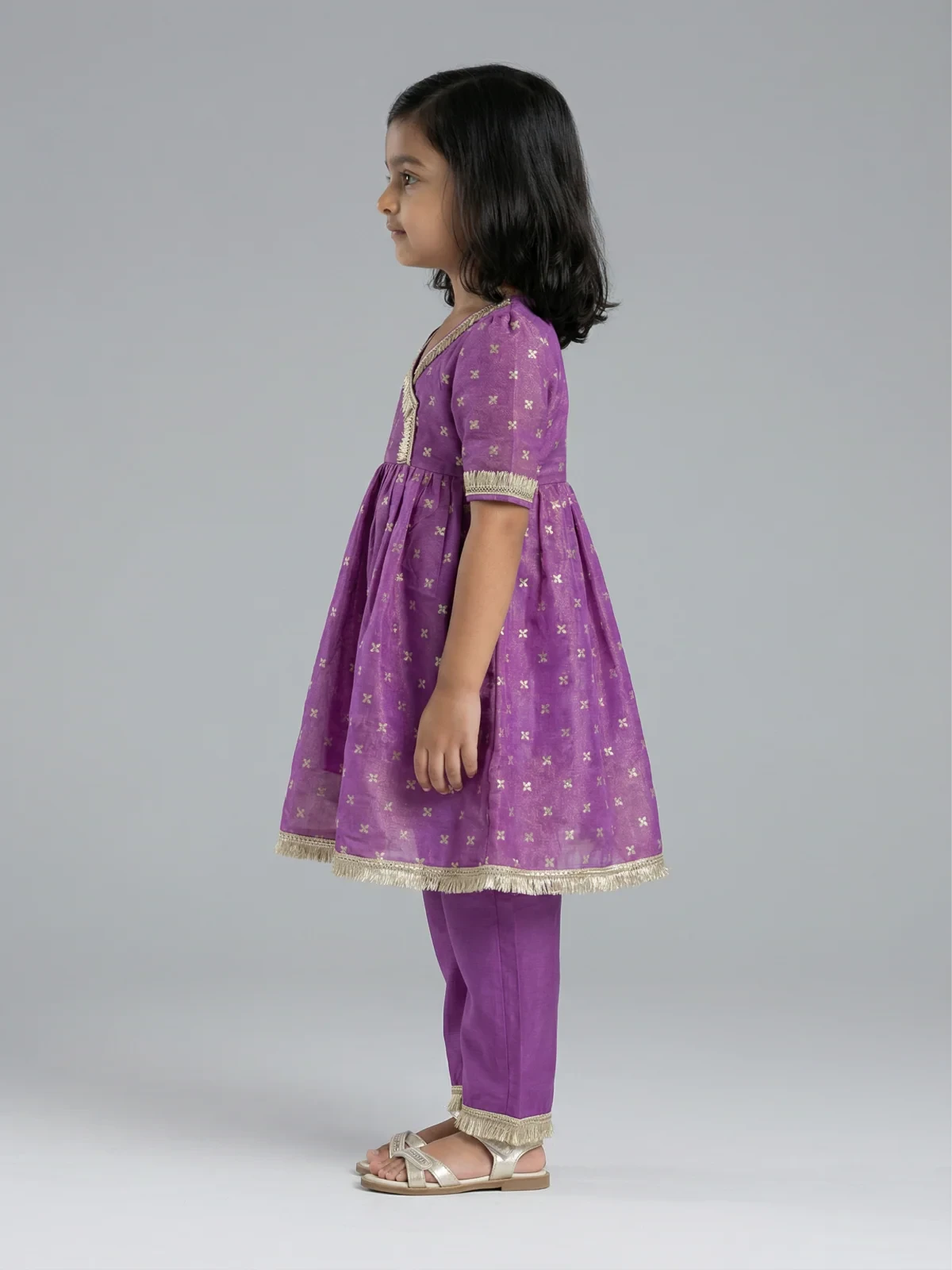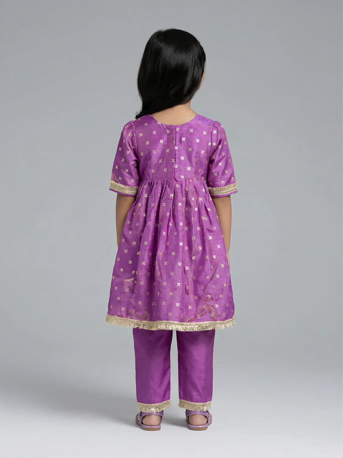 LITTLE LAMA Purple silk tissue kurta set girls