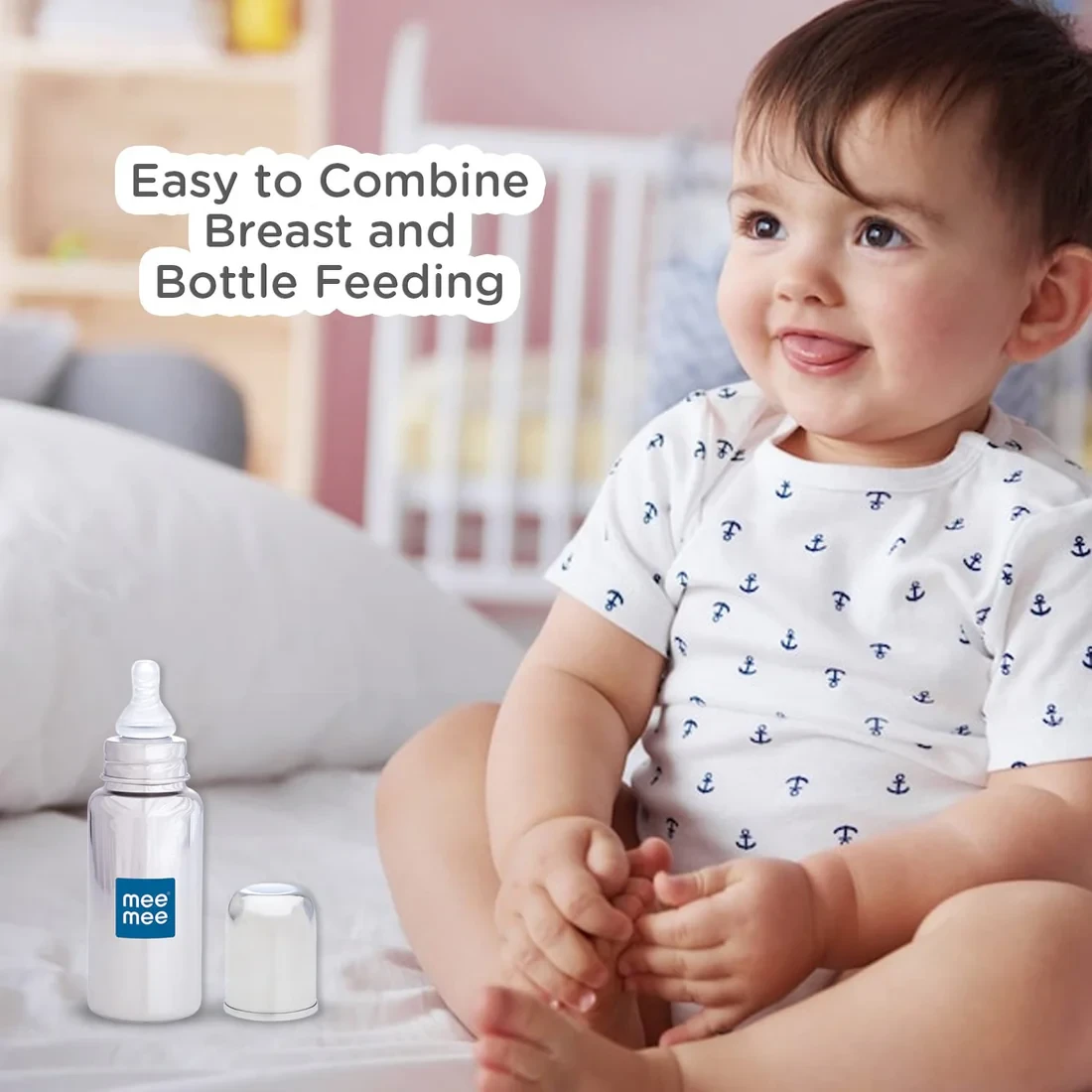 A well-fed baby is a happy baby. Mee Mee Premium Steel Feeding Bottle gives your baby the most comfortable feeding experience with the right intake of feed and reduced air intake through its specially designed anti-colic nipple Mee Mee Eazy-Flo  teat has a unique vented valve and in-built air chamber that eliminates air pockets and regulates the flow of milk. It helps to minimize colic, gas, spit up and fussiness and ensures happy bottle feeding experience.