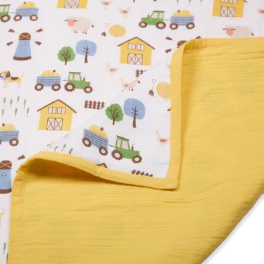 Muslin Blanket - 4 Layered - Barnyard Print & Samoan Sun