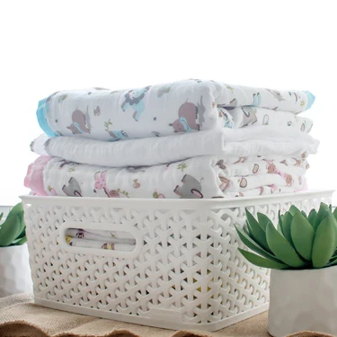 The coordinated 4-layered blanket has an attractive print and it's available in attractive & soothing color combinations. Look for our coordinated Muslin Swaddles to complete your nursery essentials.
