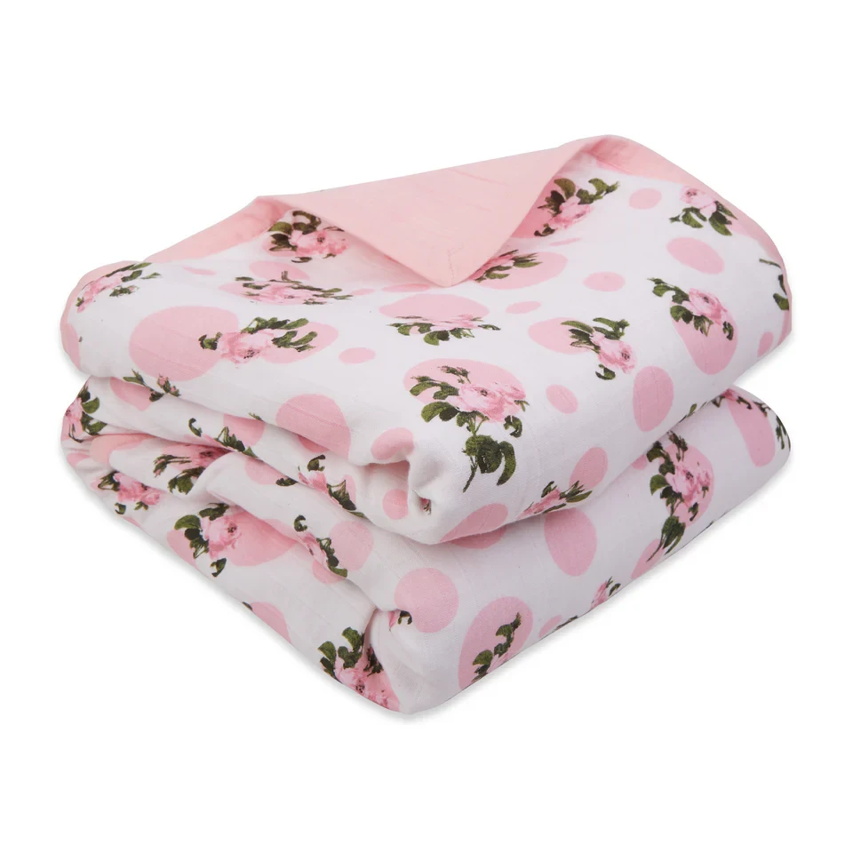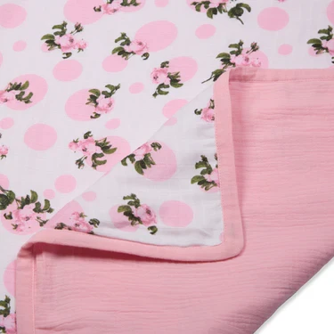 Muslin Blanket - 6 Layered - Tea Rose Print & Parfait Pink