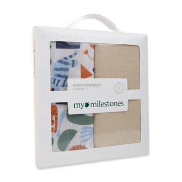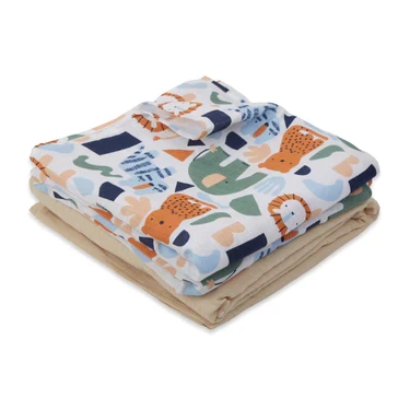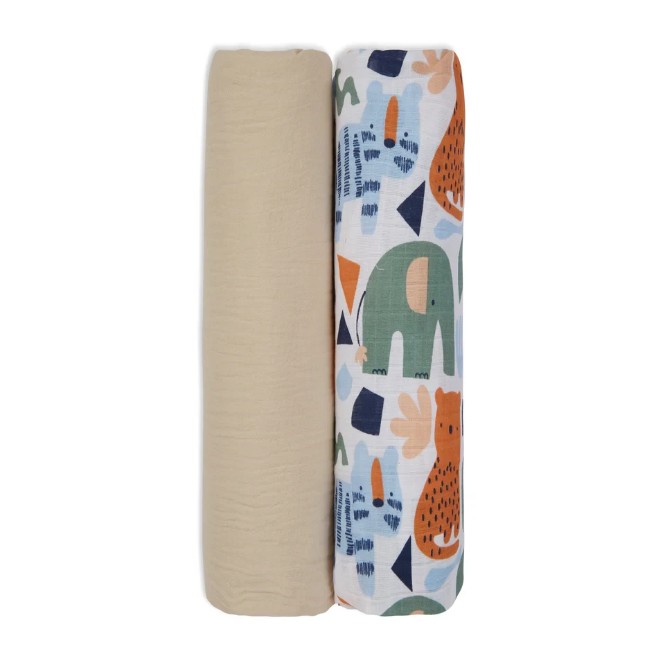 Muslin Swaddle - 2Pc Set - Animal Print & Oatmeal