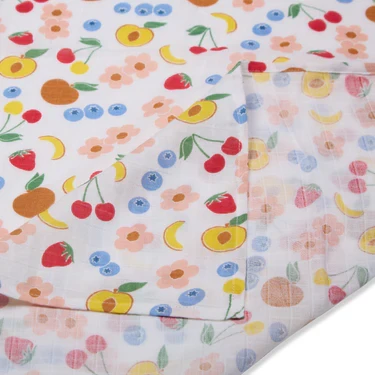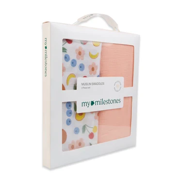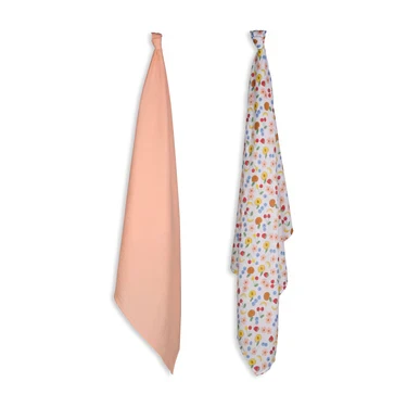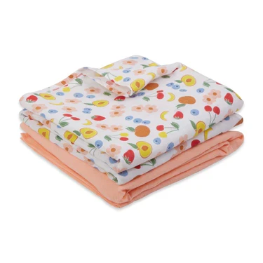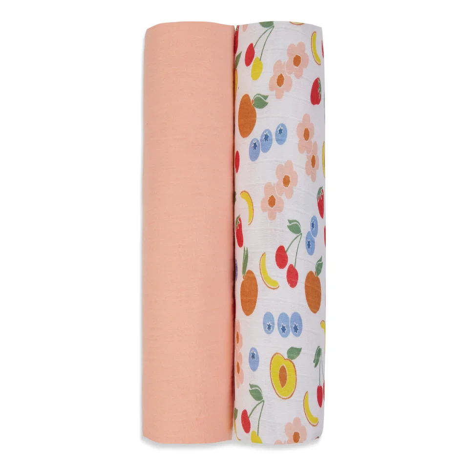 Muslin Swaddle - 2Pc Set - Fruit Print & Tropical Peach
