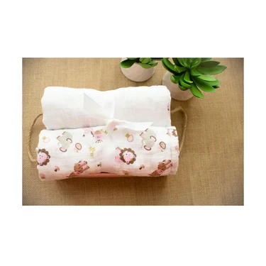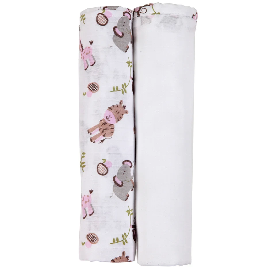 Muslin Swaddle - 2Pc Set - Zoo Pink