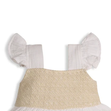 The timeless white color and the gentle design make it an ideal choice for both formal events and casual outings, offering your little one style and comfort in one delightful dress.
