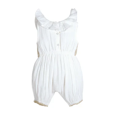 The classic white color makes it versatile for any occasion, from casual outings to special moments. This romper offers both style and comfort, making it a perfect addition to your little one's wardrobe.