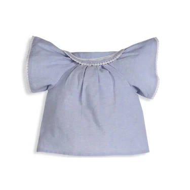 The Mia Sky Tiered Top with Chambray Shorts Set in white/blue is a charming and stylish ensemble. The tiered top, crafted from layers of delicate eyelet and soft double cloth, offers a flowy silhouette, accented with a cute bow on one strap for added charm.