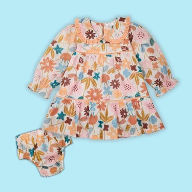 Add sparkle to your little one’s wardrobe with the My Milestones Madela Lurex Tiered Dress. Made from soft cotton with subtle lurex accents, this floral tiered dress features a lace-trim neckline and comes with a matching bloomer—perfect for outings, parties, or everyday wear.