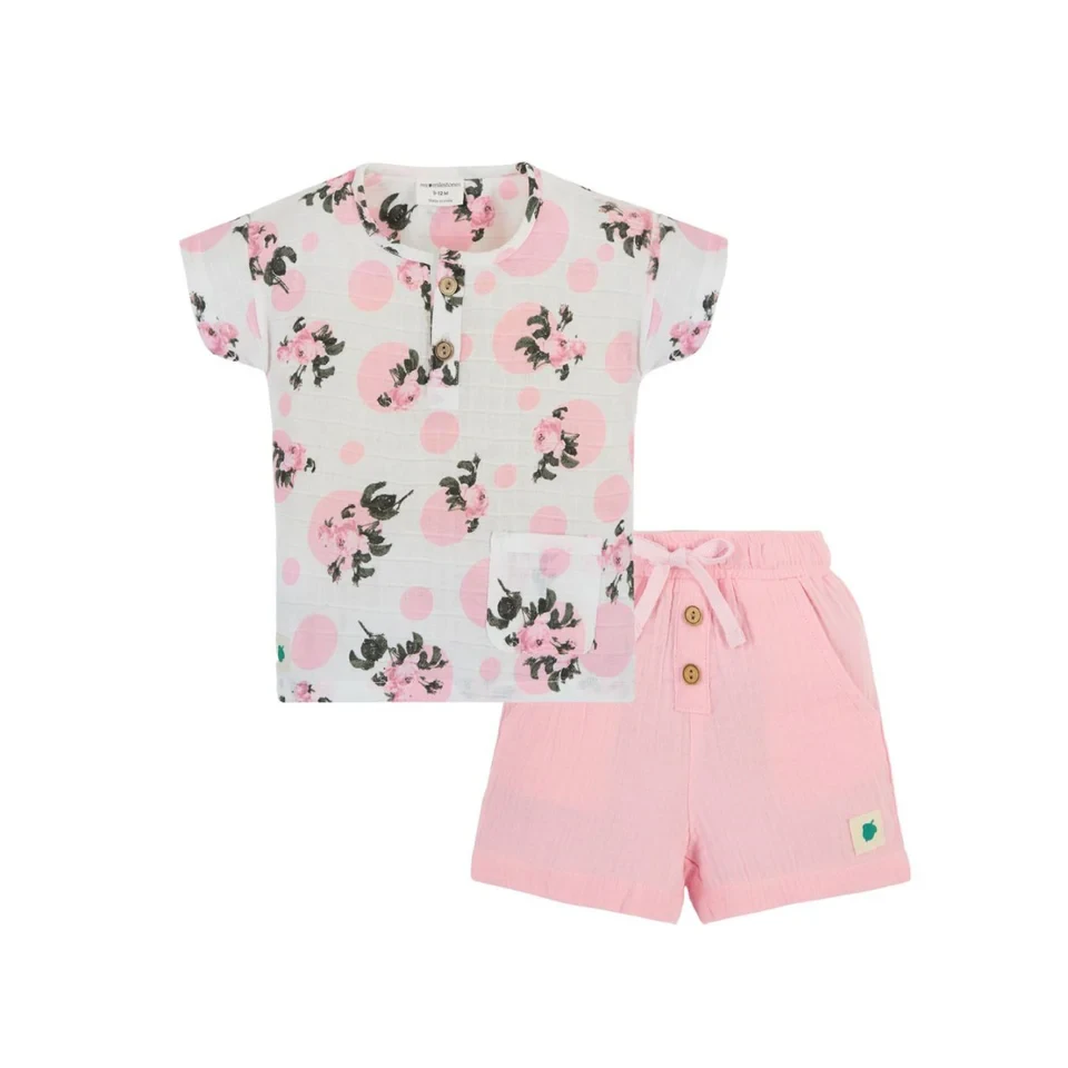 My Milestones Tea Rose Drop Shoulder Shirt with Double Cloth Shorts
