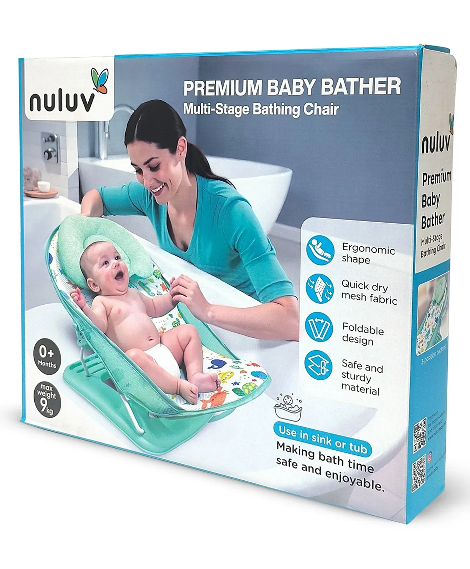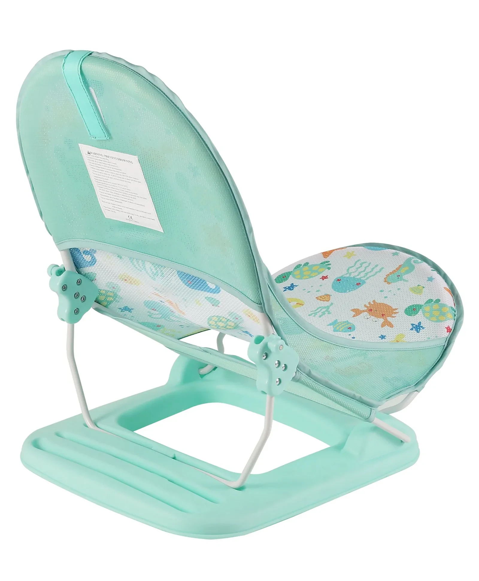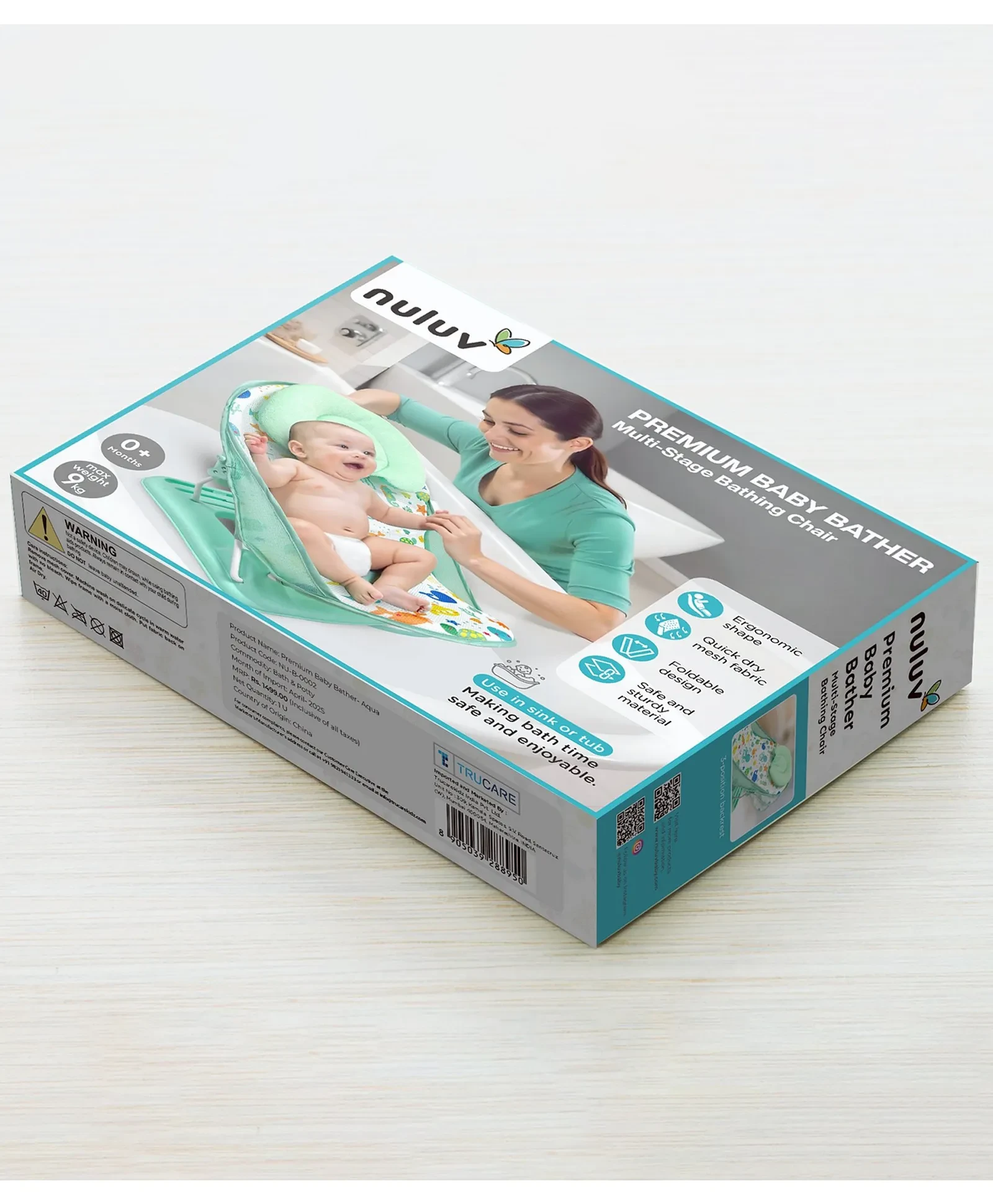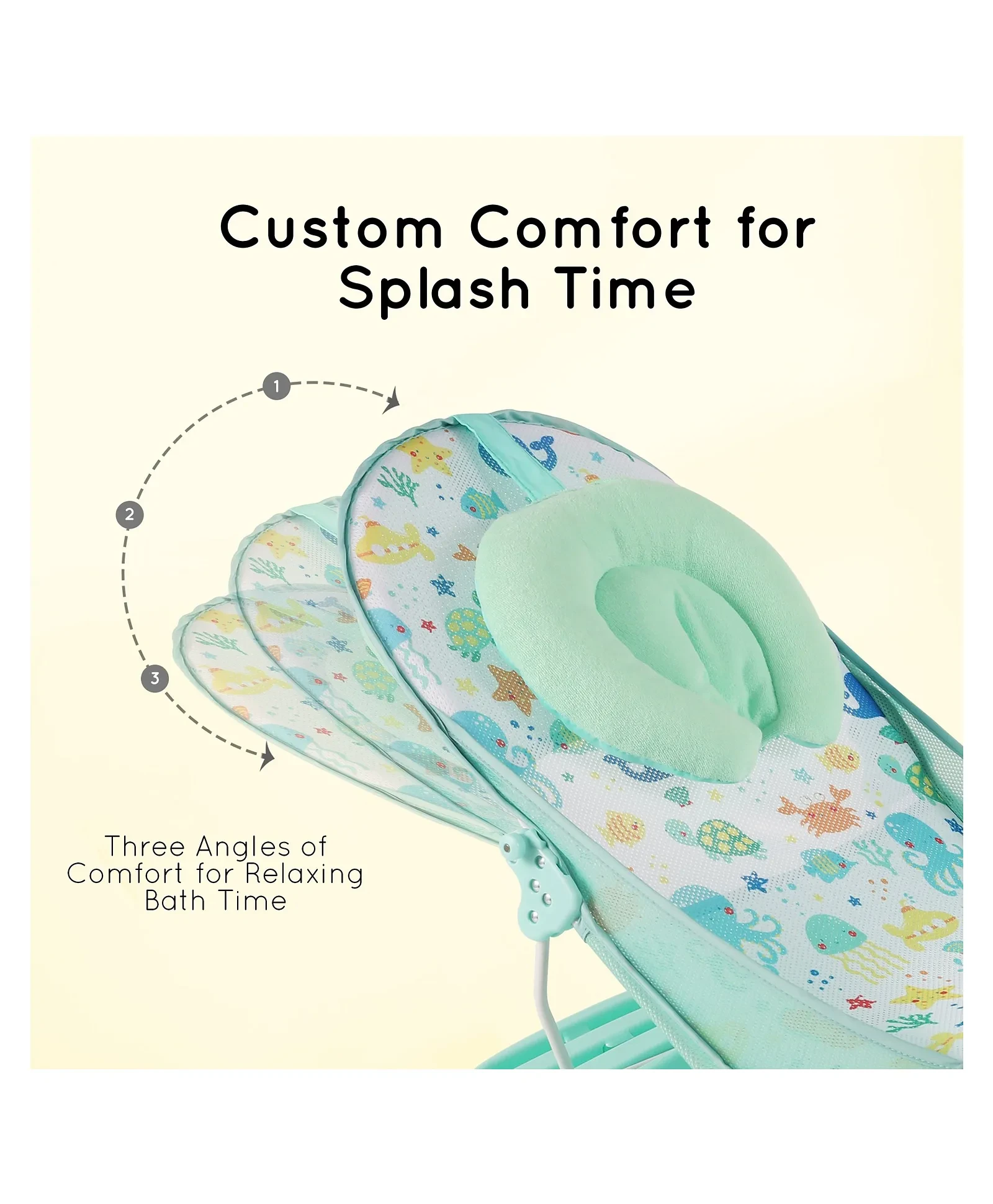 Foldable & Adjustable Home & Travel Baby Bath Bather Seat. Suitablefrom birth, can be used upto when your child can sit unaided. Maximum weightlimit 5 kg.. 3-Position Recline for child's comfort for use in the sink or adultbathtub. Soft and breathable fabric used. Compact Fold for storage & Traveler movable,machine washable Fabric Heads support (optional).