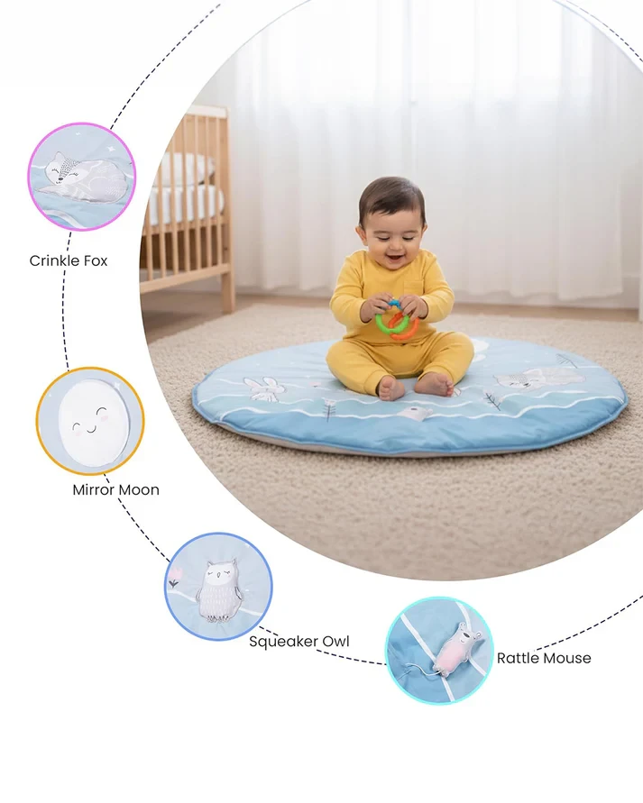 2. Supports Early Development: Helps enhance cognitive growth, spatial awareness, sensory exploration, and fine motor skills through interactive play and tummy time activities.