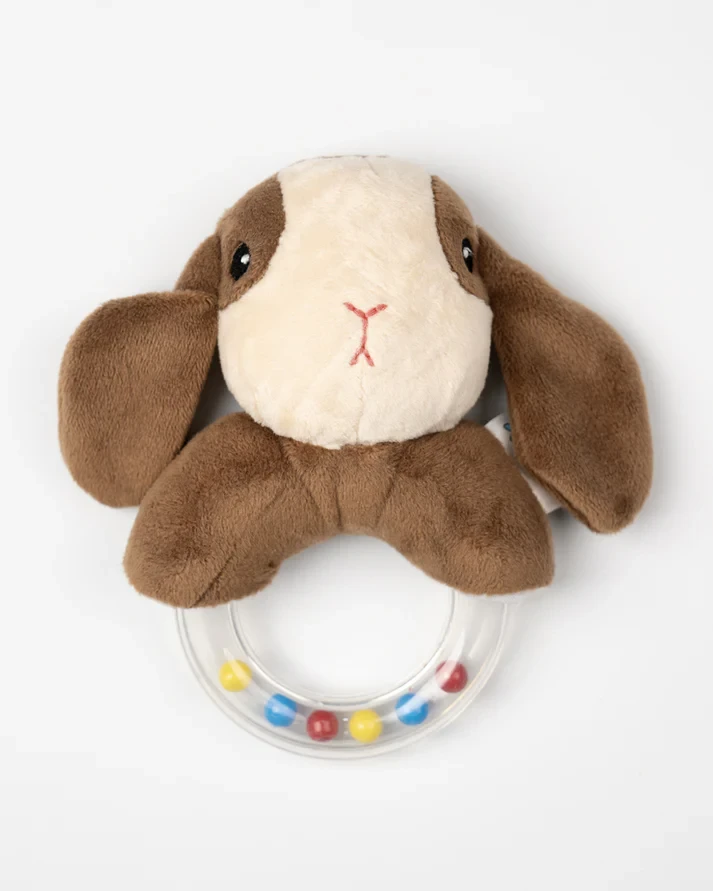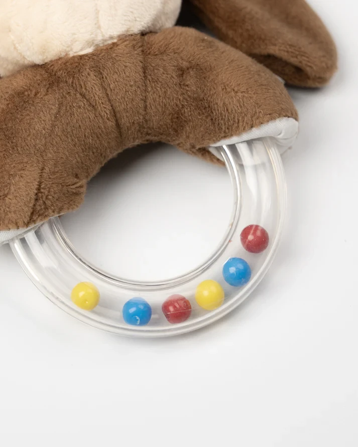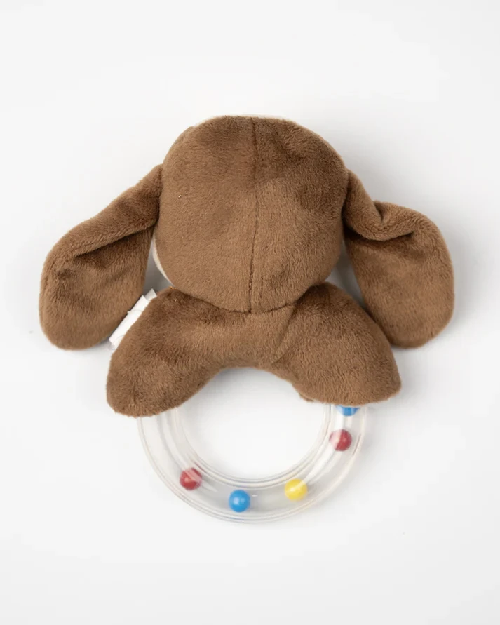 nuluv Puppy Rattle Teether Toy-Plush Rattle-Smooth Edges- BPA and PVC Free-Brown-3M+