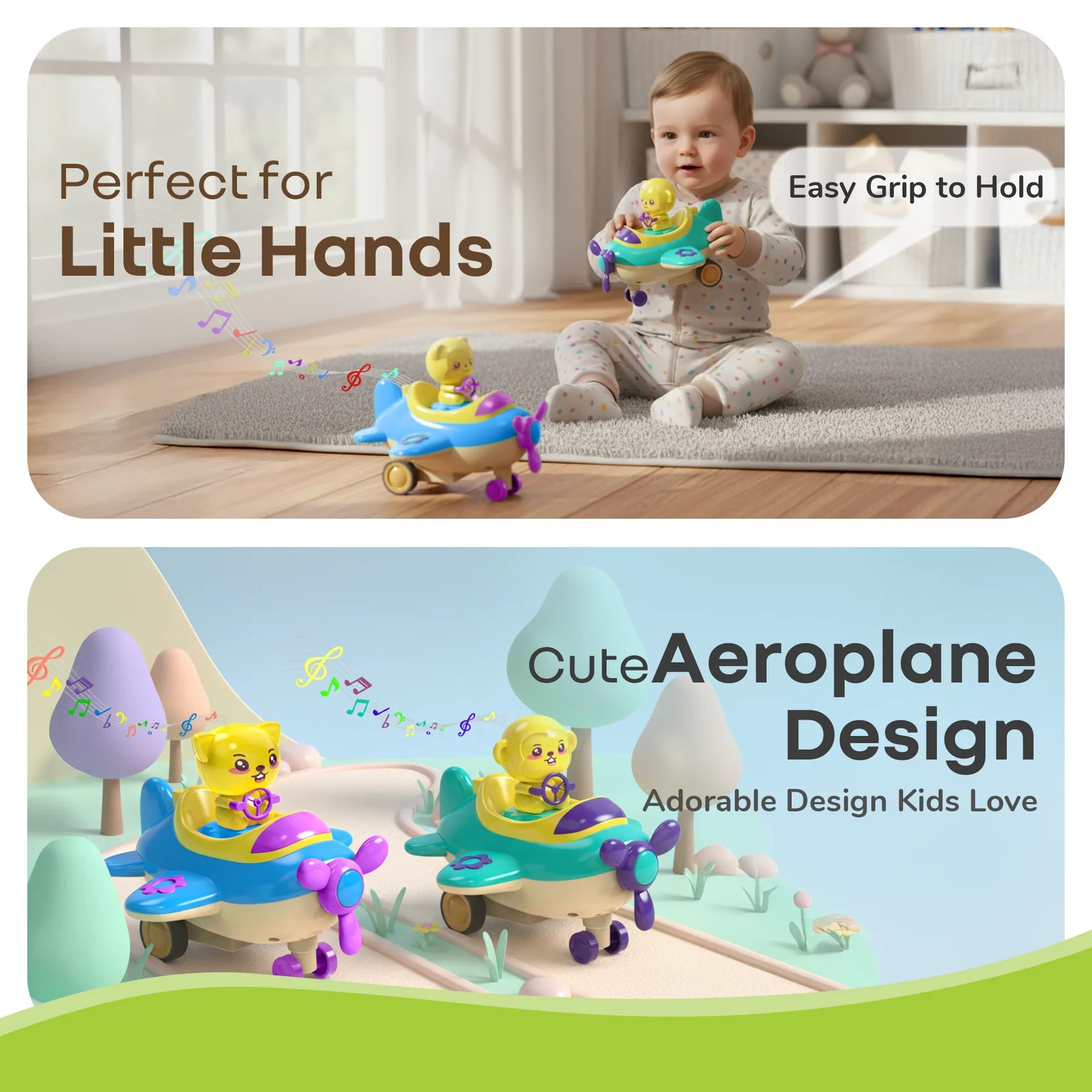 Orapple Aero Rider - BPA-Free, Non-Toxic Baby Airplane Push Toy with Lights & Music (Pack of 2)