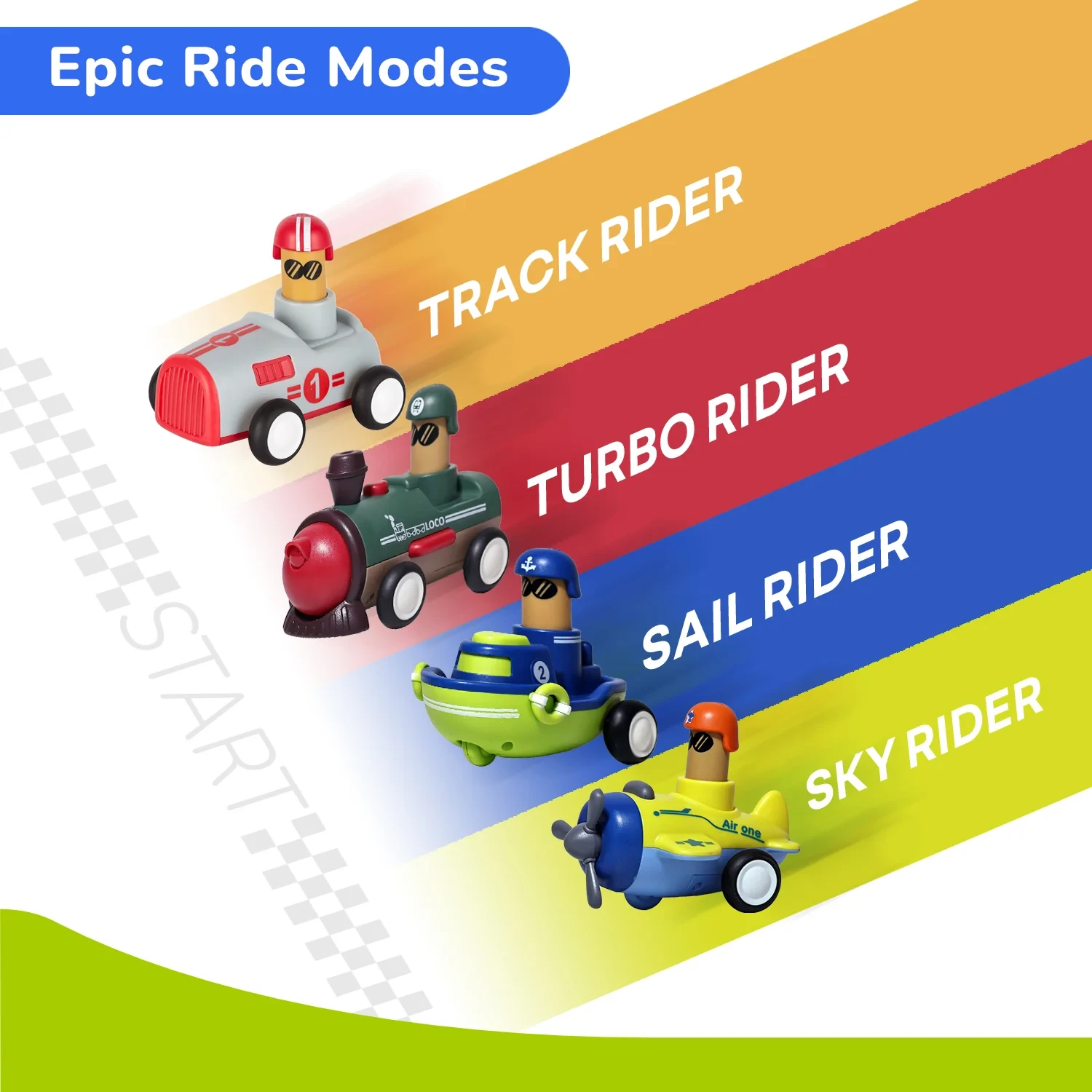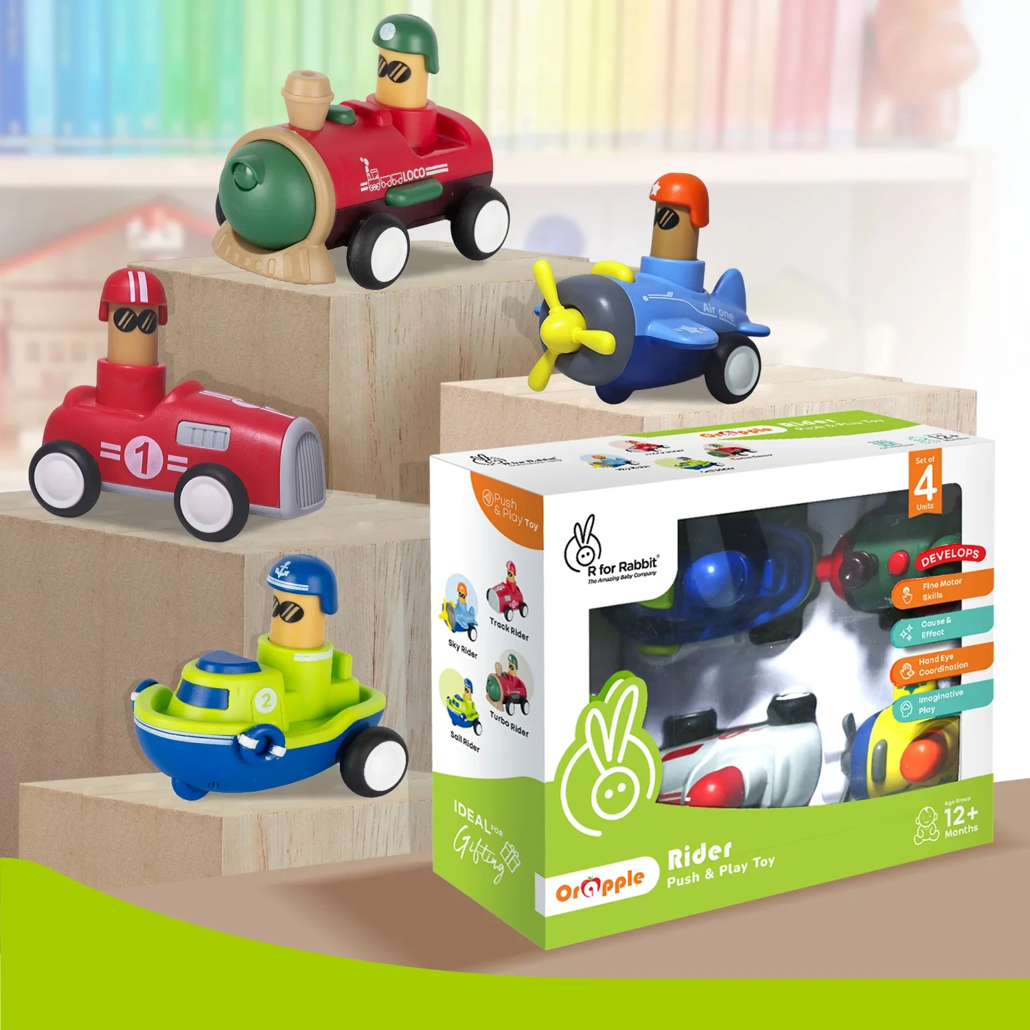 Orapple Rider BPA-Free Set of 4 Push Toys for Toddlers (Track, Sky, Turbo, Sail)