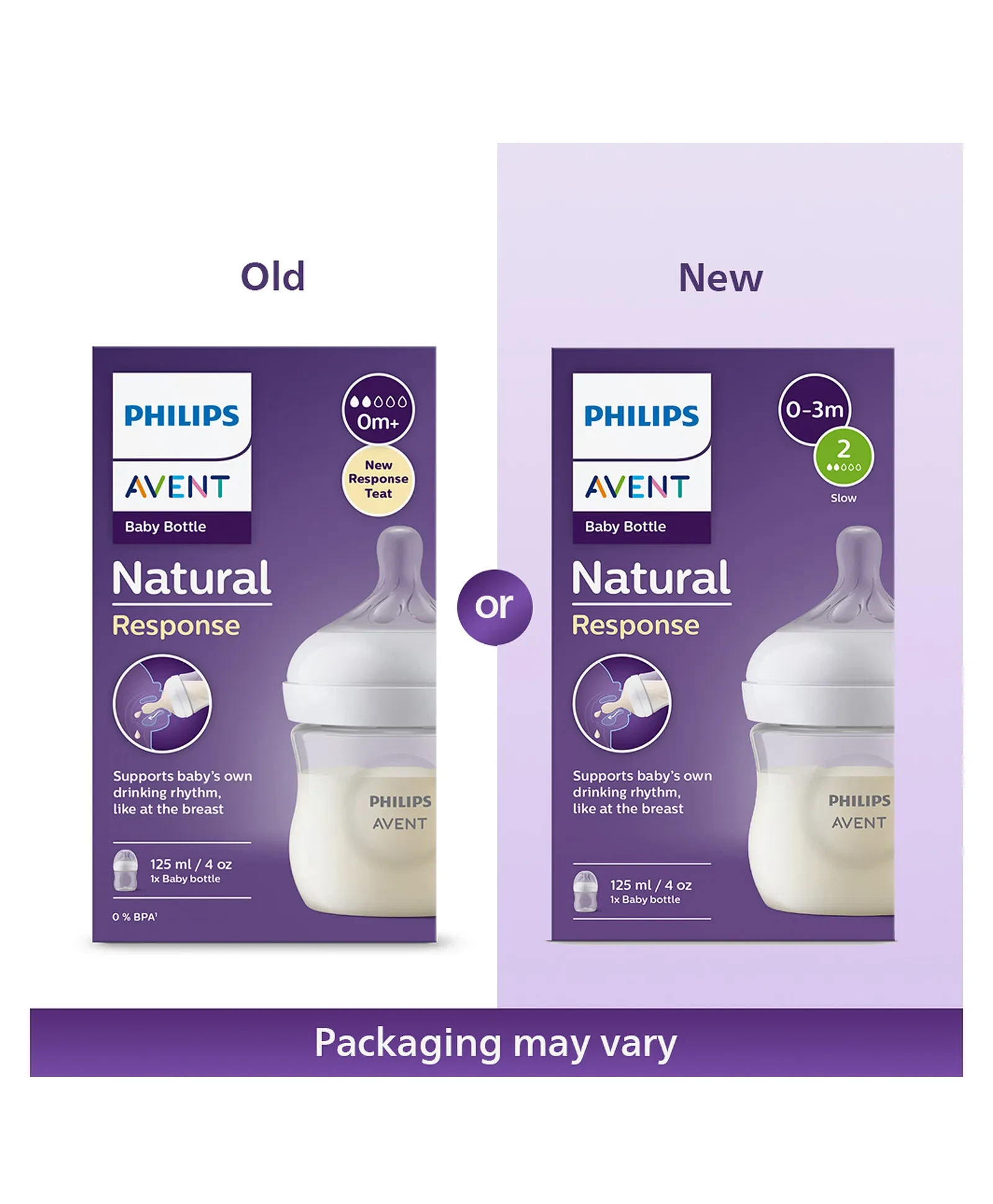 PHILIPS Avent Natural Response 125 ml Baby Feeding Bottle | Uniquely Designed Nipple releases milk only when baby drinks | Pack of 1 (Packaging May Vary)
