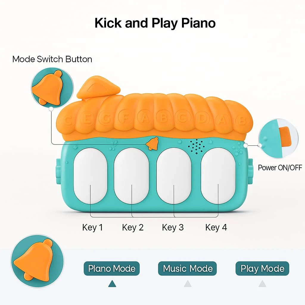 1. 🎵 Interactive Kick Piano with Music & Lights – The built-in baby piano responds to gentle kicks with cheerful tunes and soft lights, introducing babies to rhythm and sound recognition while strengthening their leg muscles during tummy time.
