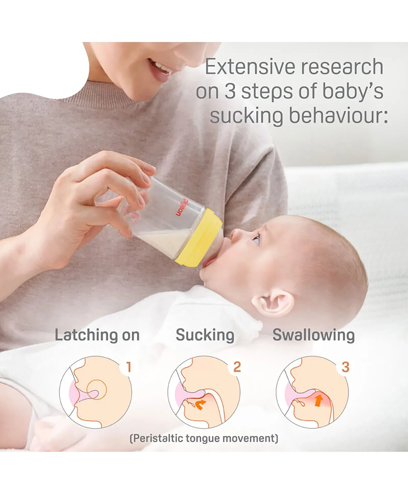 2. Product facilitates the three key steps of a baby's sucking