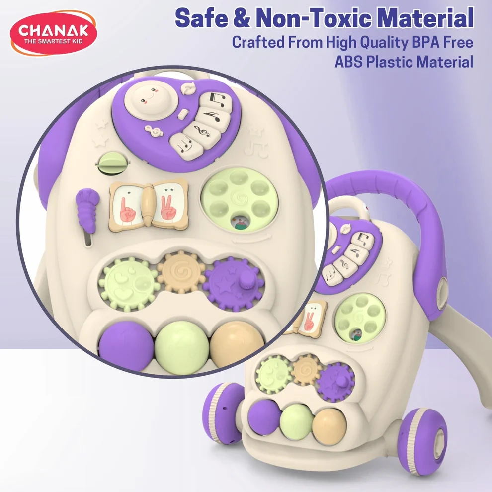 Chanak Happy Feet baby walker is a thoughtfully designed multifunctional activity walker created to support babies aged 9 months and above during their early walking journey. Made from premium BPA-free ABS plastic with smooth, burr-free edges, this infant walker ensures safety, stability, and comfort while helping babies gain confidence as they learn to walk.