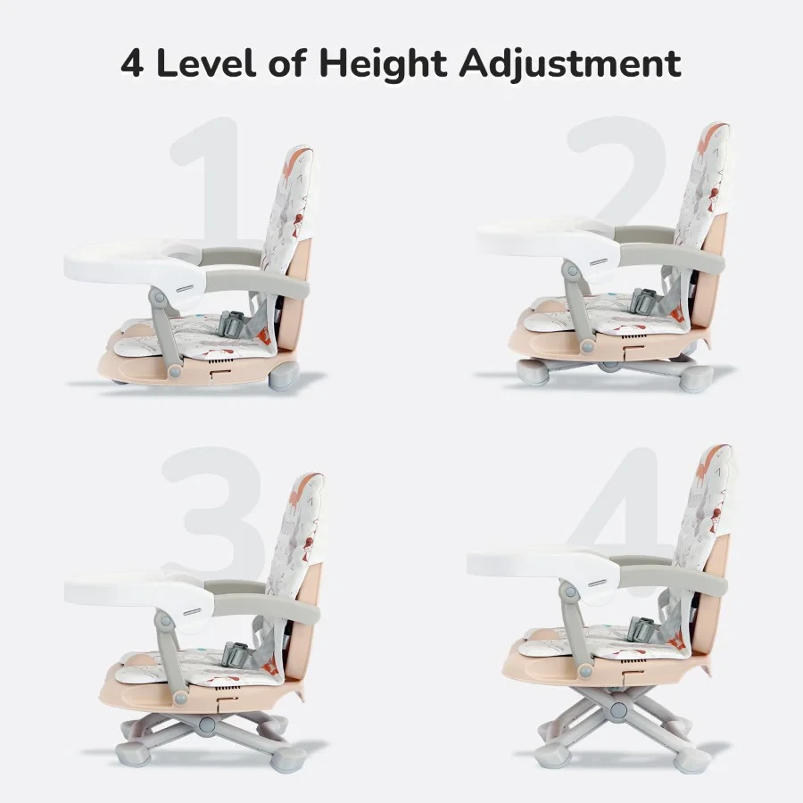 4 Level Height Adjustment: Make the child totally comfortable while dining on a table with 4 levels of height adjustment.
