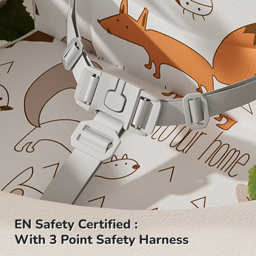 3 Point Safety Harness: Make mealtime totally safe by applying 3 Point Safety Harness for your child.
