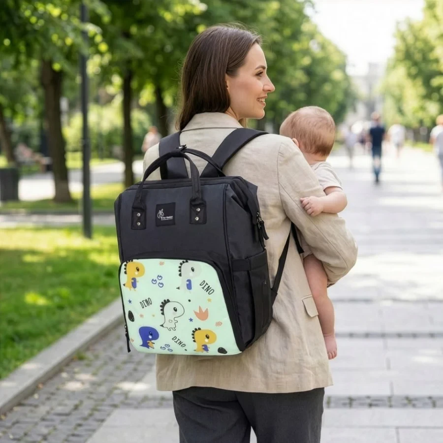 R for Rabbit Caramello Dino Diaper Bag for Mother, Multipurpose Stylish Diaper Bag with 11 Pockets